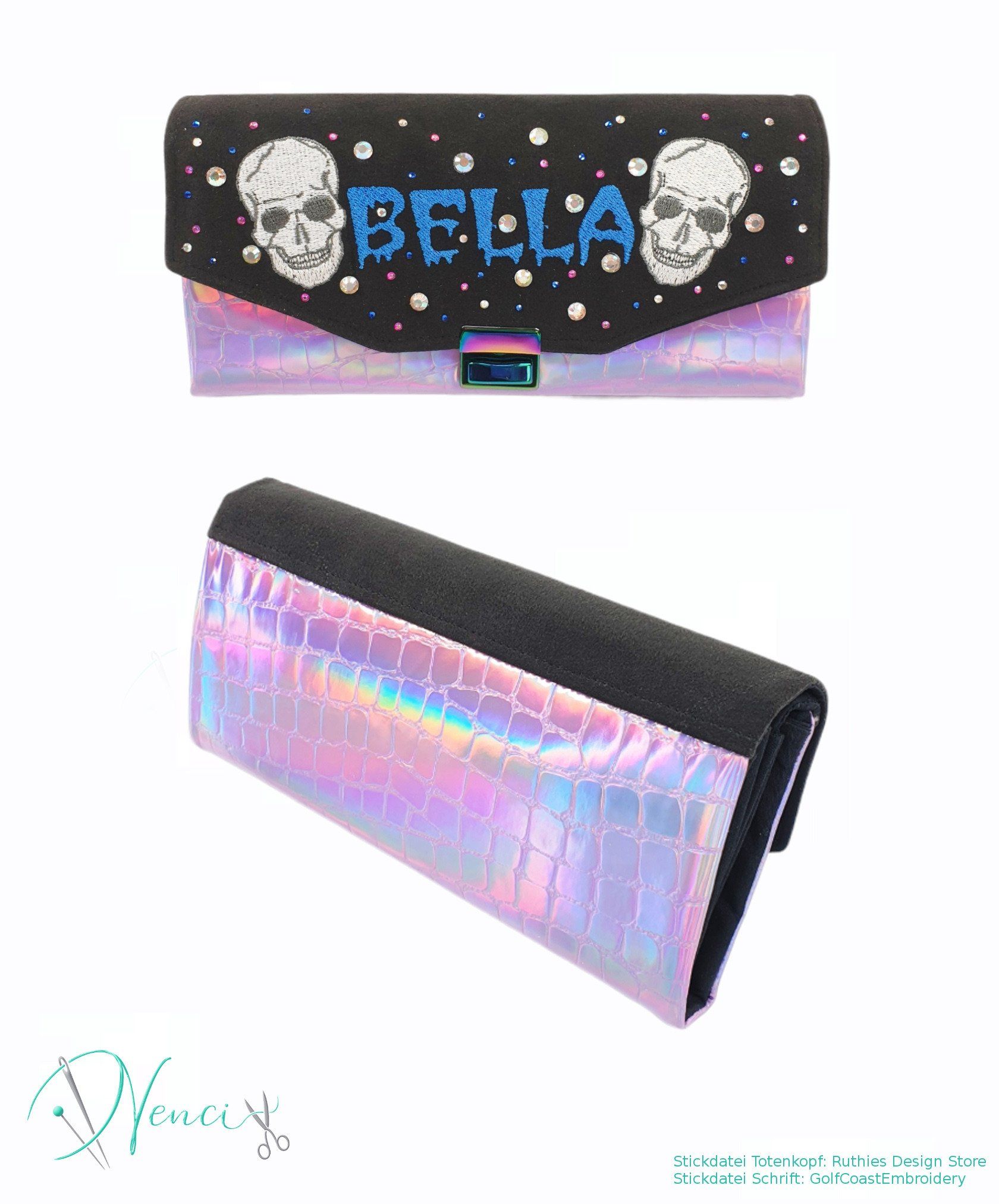 Es gibt die Möglichkeit hübsche Halterungen für eine Taschenkette anzubringen (gibt´s natürlich auch bei mir), damit du dein PortMONEY auch zu einer Ausgehtasche umfunktionieren kannst.