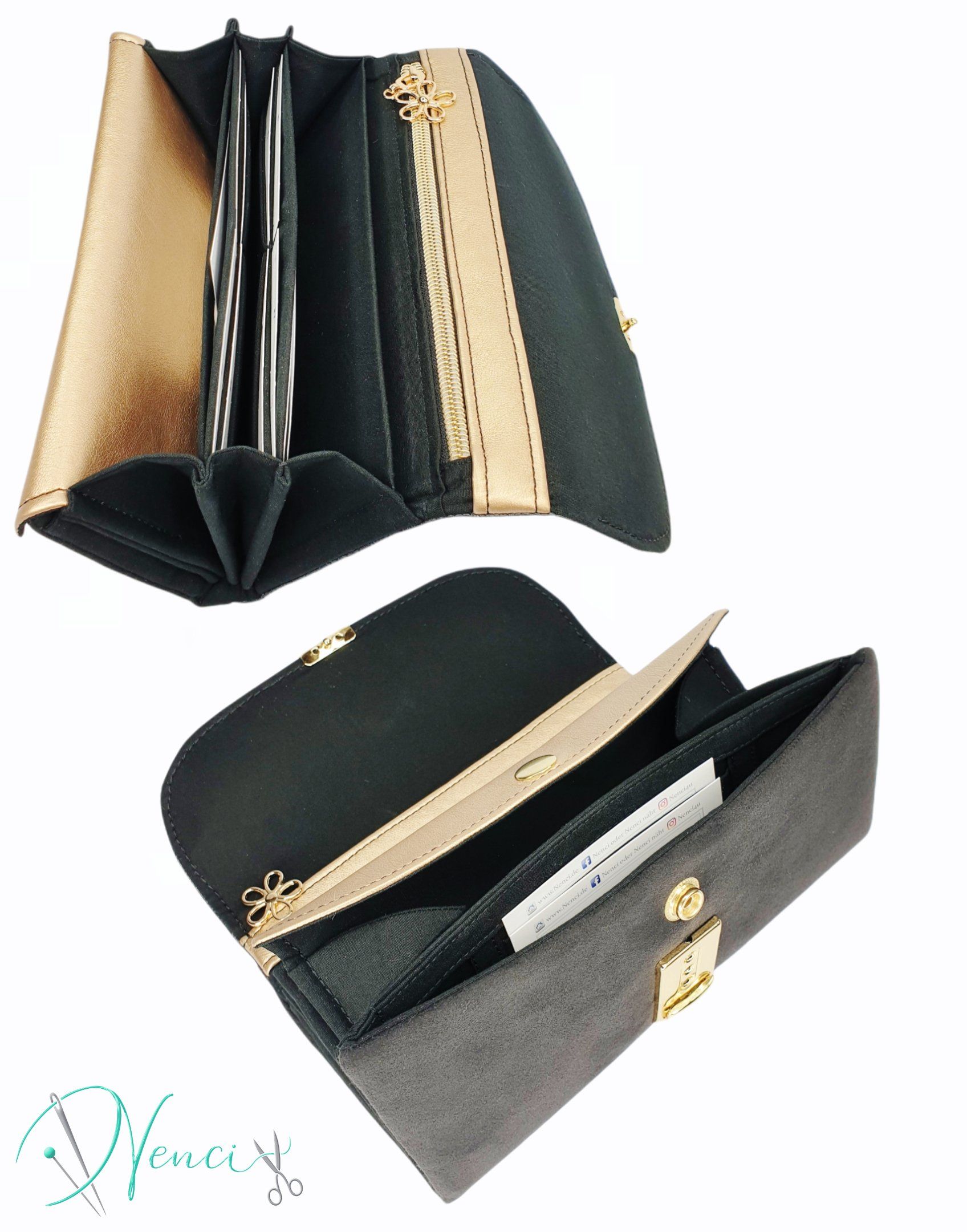 Das Münz- bzw. Geldscheinfach ist hinter der großen Klappe versteckt, du öffnest also erst deinen Geldbeutel, dann das Münz- bzw. Geldscheinfach.