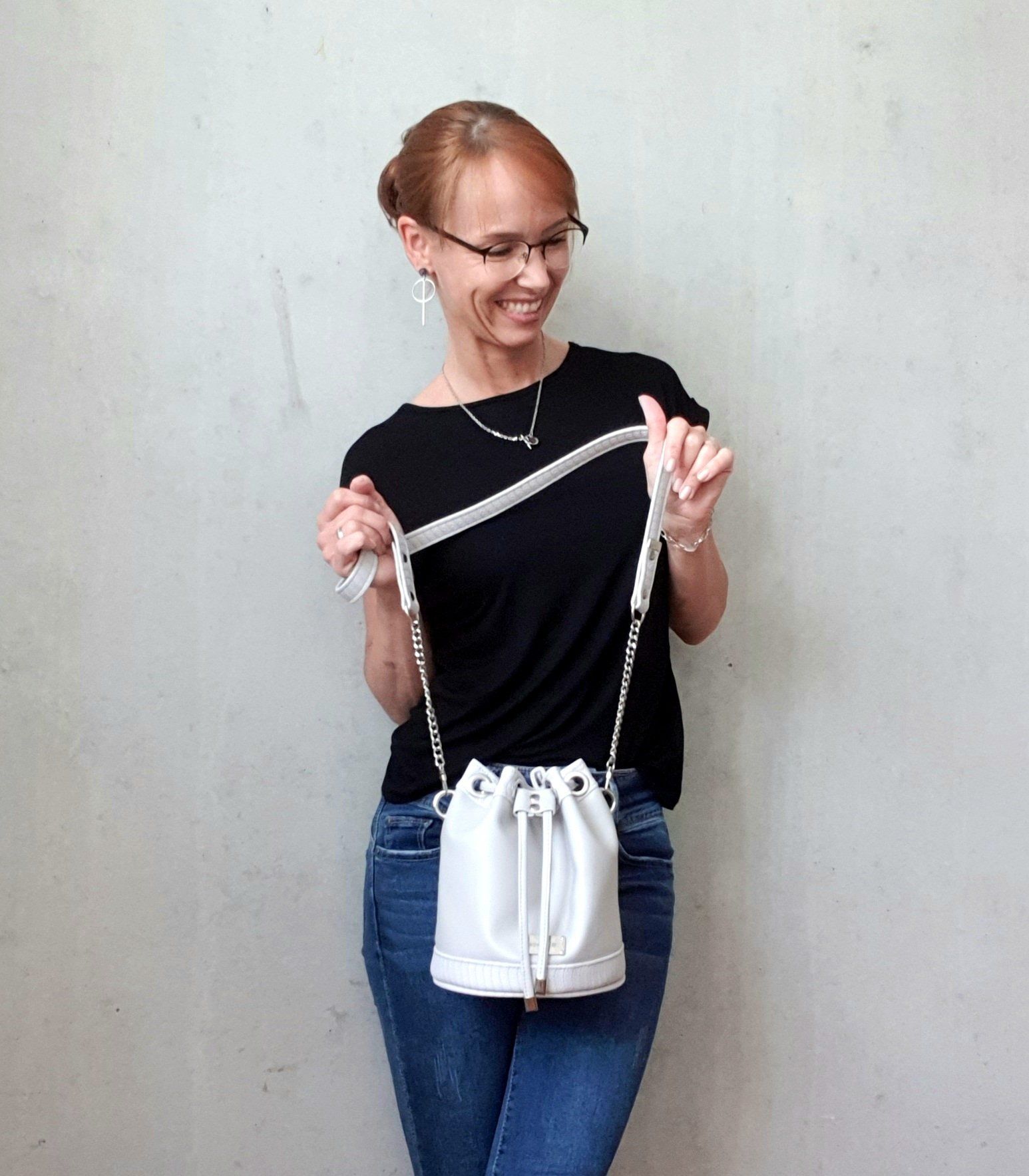 Den Gurt kann ich dir gerne aus dem gleichen Stoff oder Kunstleder nähen oder du entscheidest dich für eine stylische Taschenkette oder einen von vielen fertigen Taschengurten, die ich dir gerne zeige.