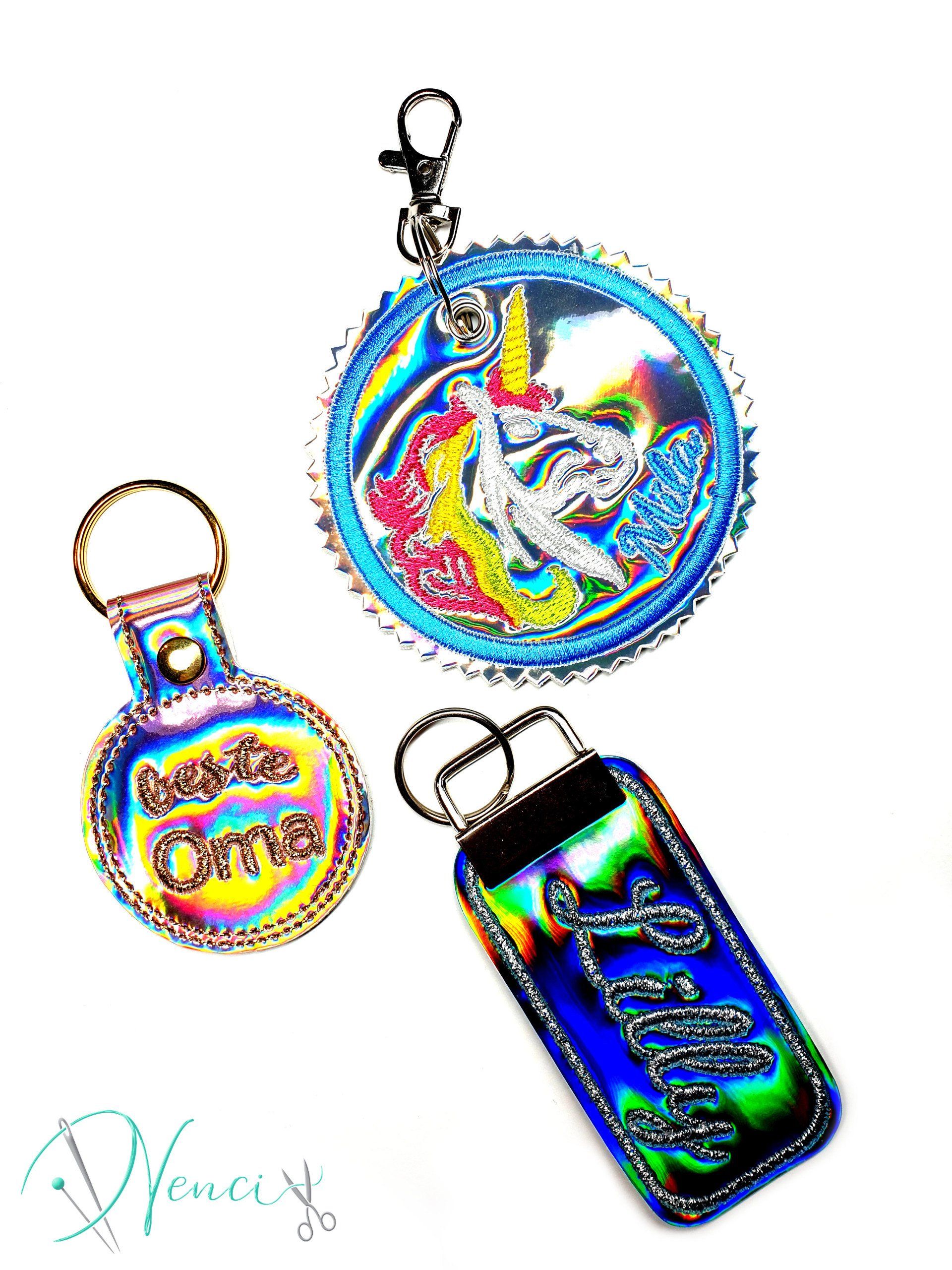 Der Rohling ist in silber, gold, roségold, rainbow oder messing möglich (inkl. Schlüsselring) oder nur mit Schlüsselring und Schlaufe.