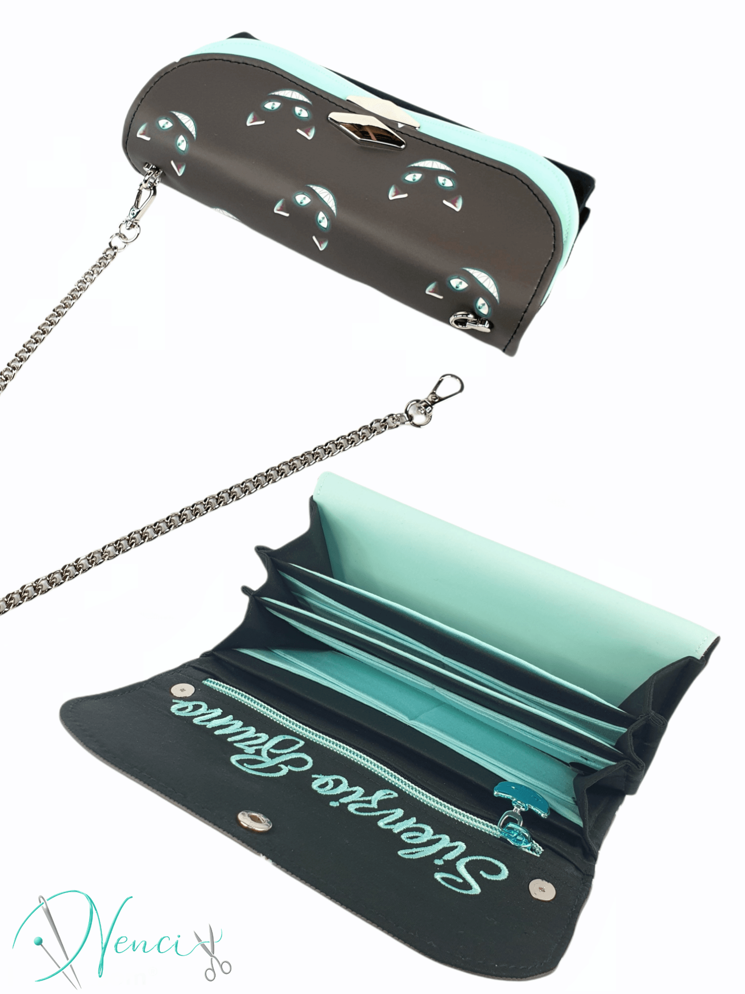 Es gibt die Möglichkeit hübsche Halterungen für eine Taschenkette anzubringen (gibt´s natürlich auch bei mir), damit du dein PortMONEY auch zu einer Ausgehtasche umfunktionieren kannst.