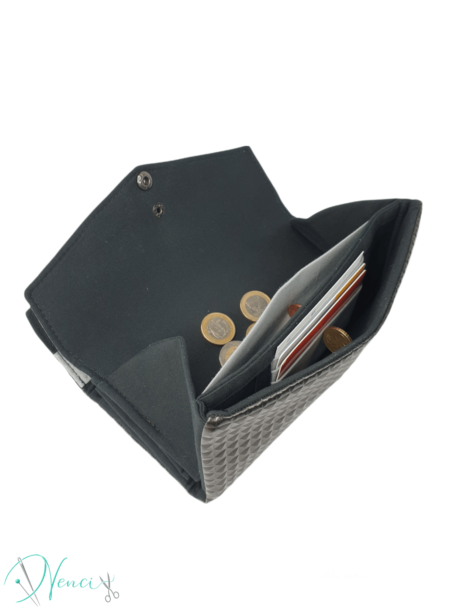 Das Münzfach lehnt sich beim Design an eine Kellnerbörse an, so dass es weit zu öffnen ist und man sofort den Überblick über sein Kleingeld hat.
