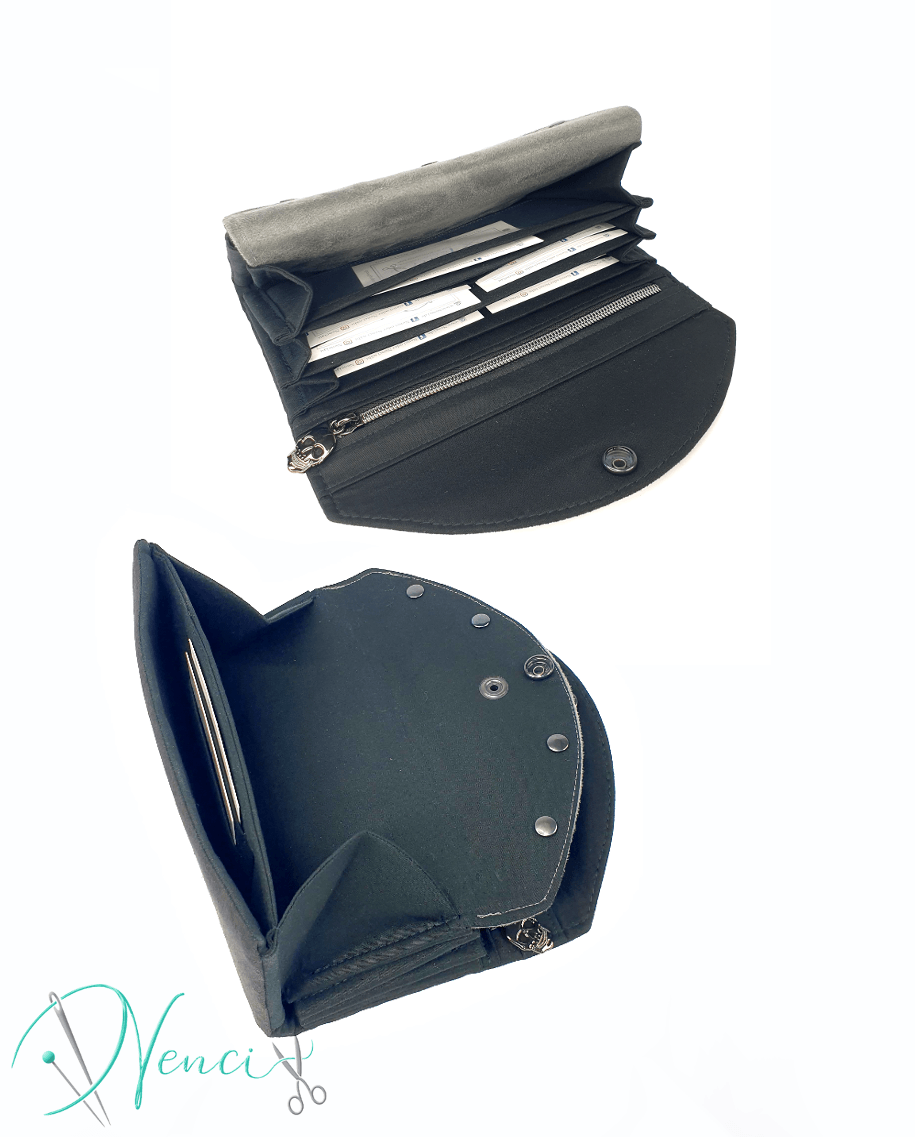 Das Münz- bzw. Geldscheinfach ist hinter der großen Klappe versteckt, du öffnest also erst deinen Geldbeutel, dann das Münz- bzw. Geldscheinfach.