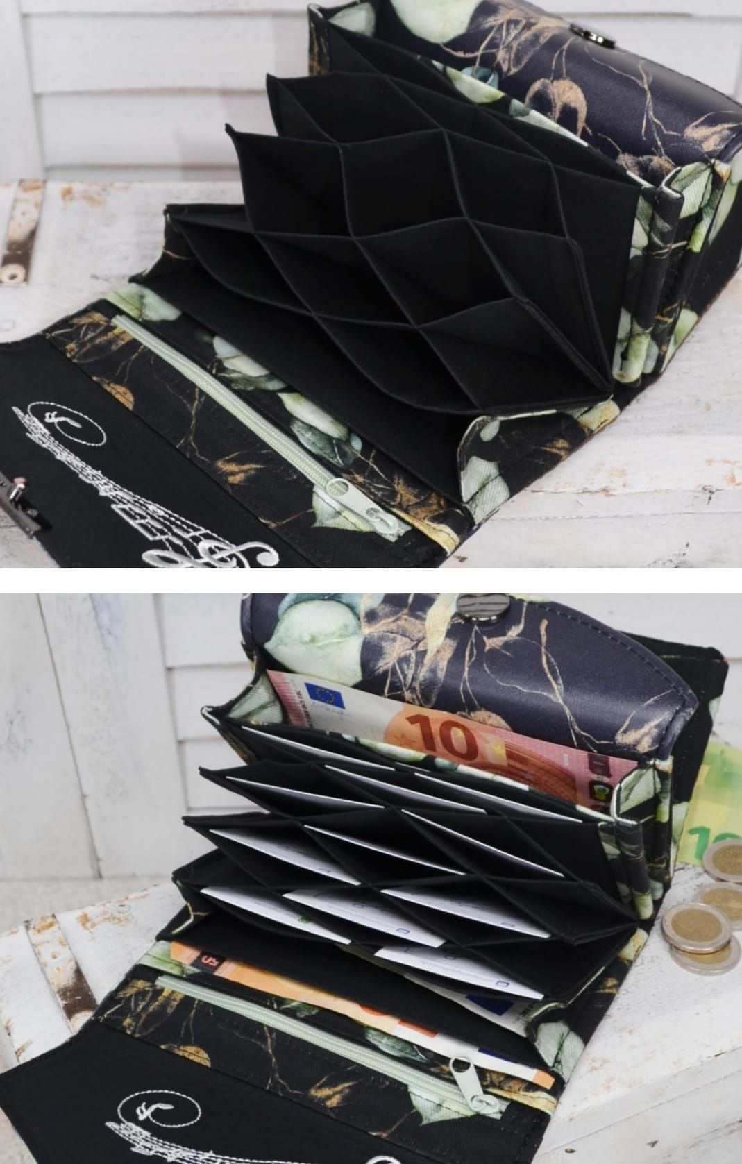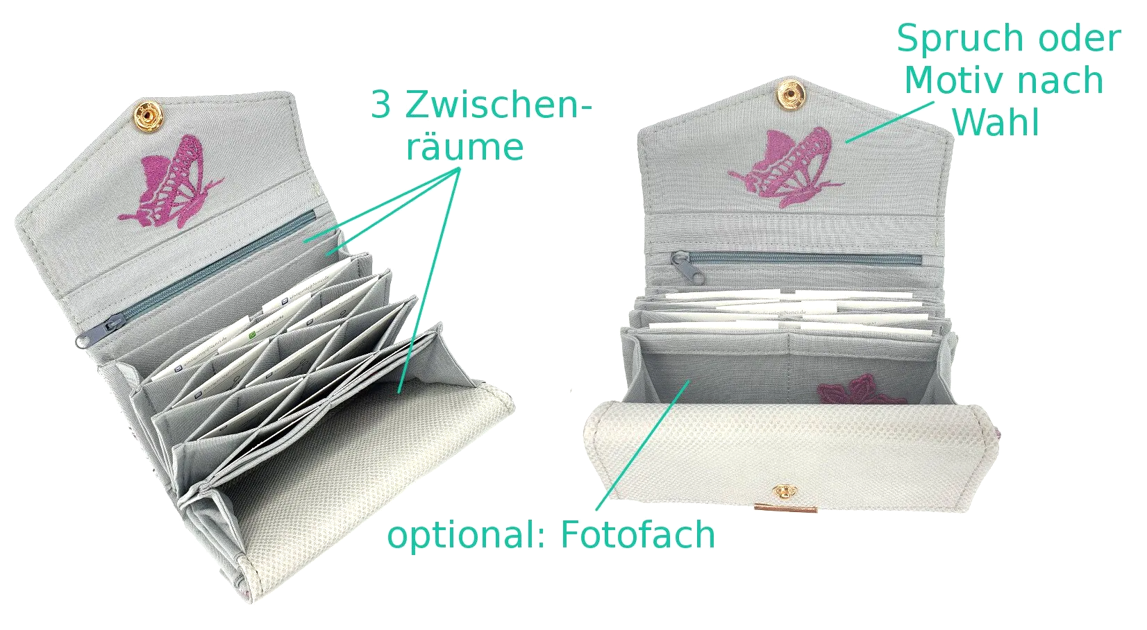 Du hast in den 3 Zwischenräumen viel Platz für Kassenbons, diverse Gutscheine oder Bonushefte.