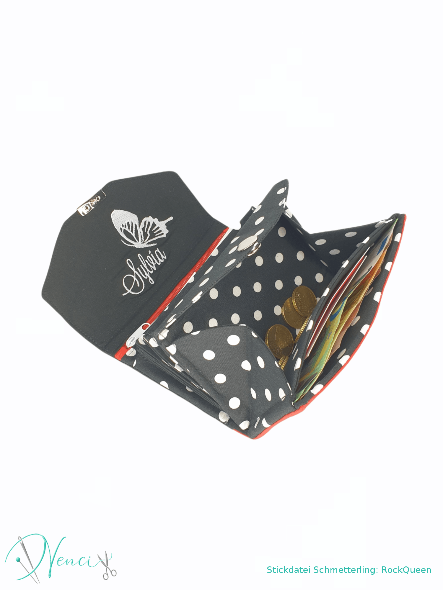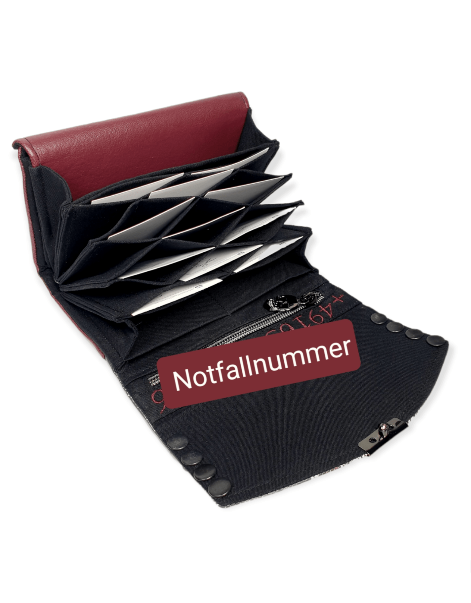 Das Münzfach lehnt sich beim Design an eine Kellnerbörse an, so dass es weit zu öffnen ist und man sofort den Überblick über sein Kleingeld hat.