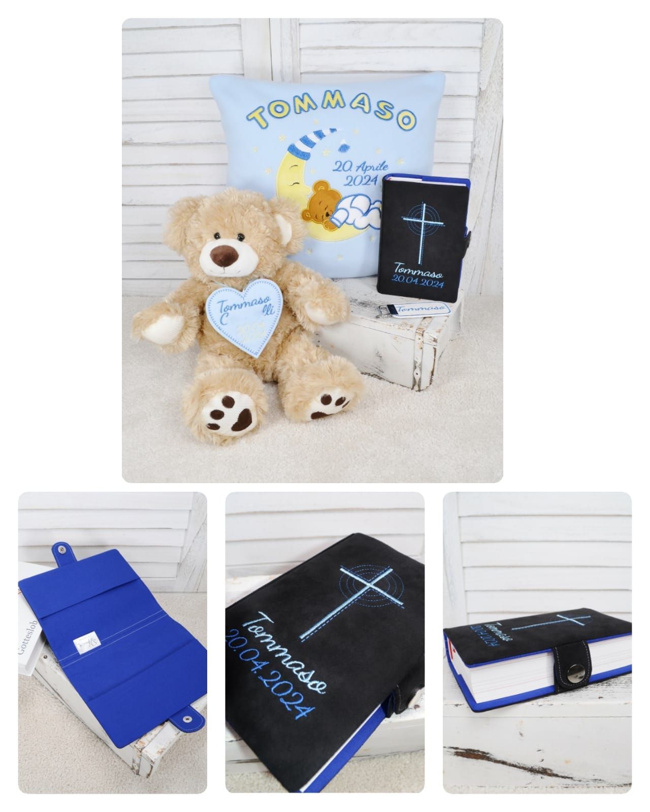 Die Farbe für Name, Datum, Buchrücken, Spruch etc. können gerne ebenfalls nach Wunsch ausgesucht werden!