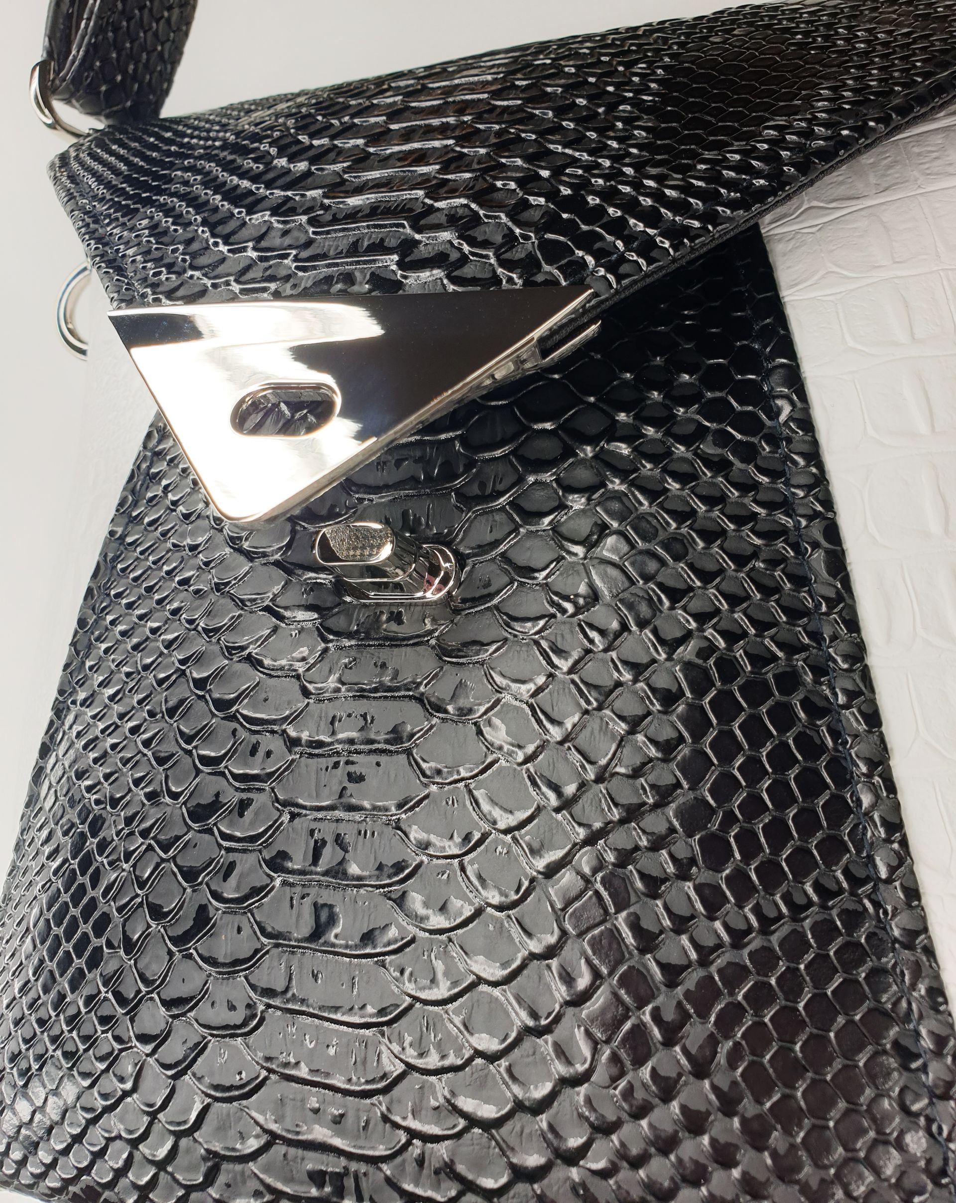 Diese Tasche wird entweder durch einen Magnetknopf oder durch ein Steckschloss geschlossen: ganz wie du möchtest.