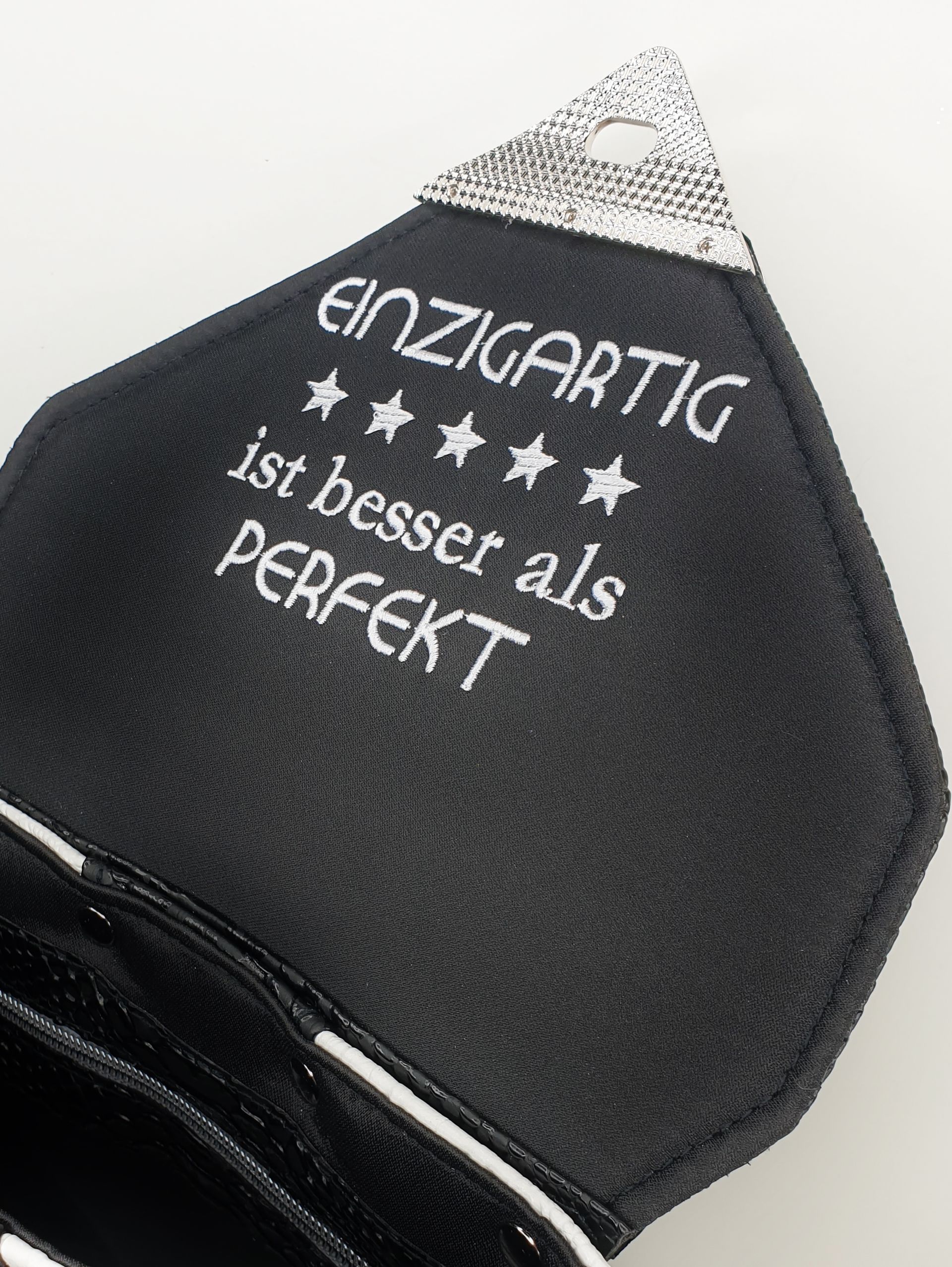 Je nach Wunsch kann ein Reißverschlussfach und/oder Einsteckfach eingenäht werden.