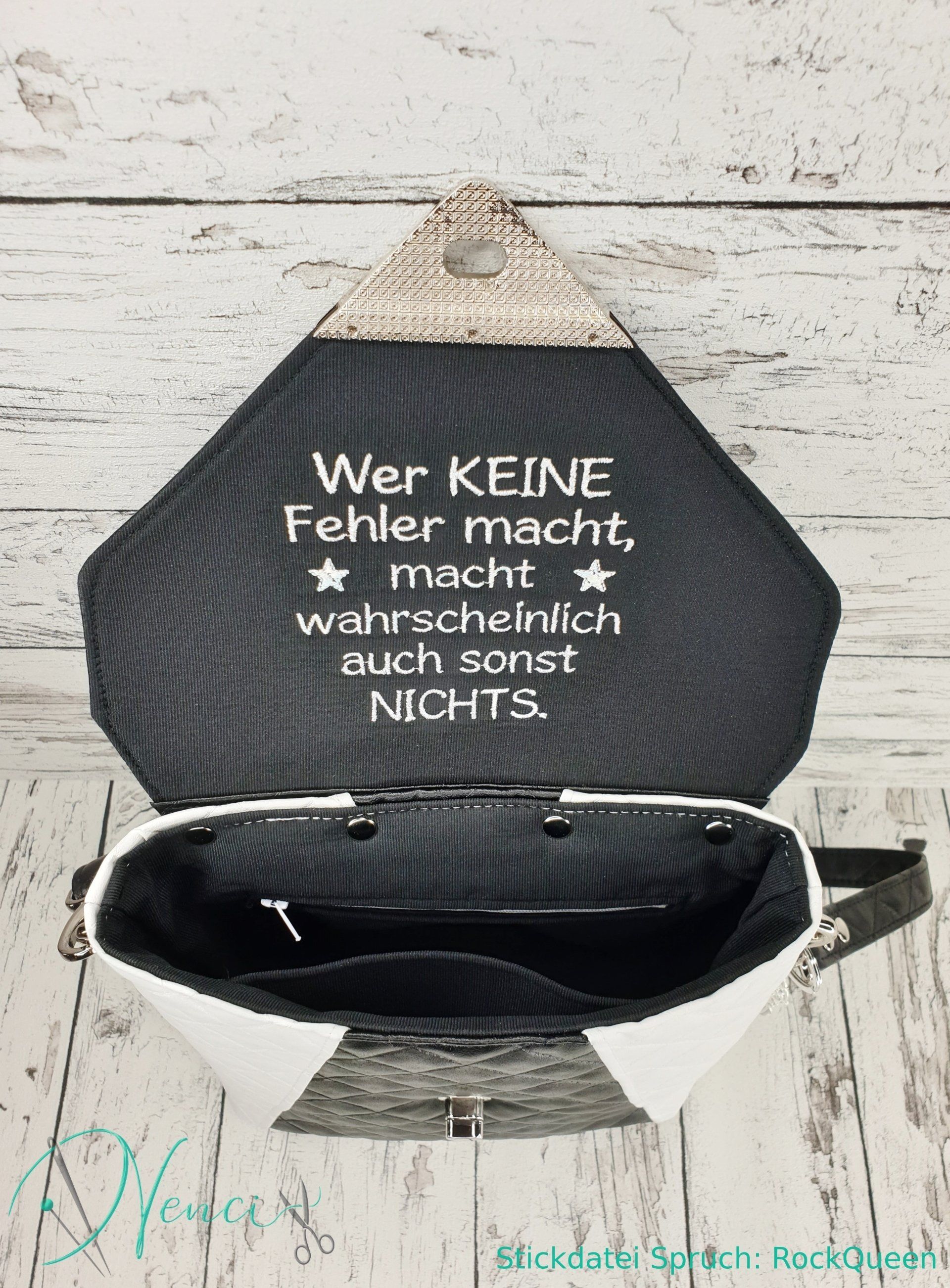 Es ist genauso möglich, eine tolle Botschaft auf die Innenklappe zu sticken, solltest du eine Fiorella verschenken wollen.