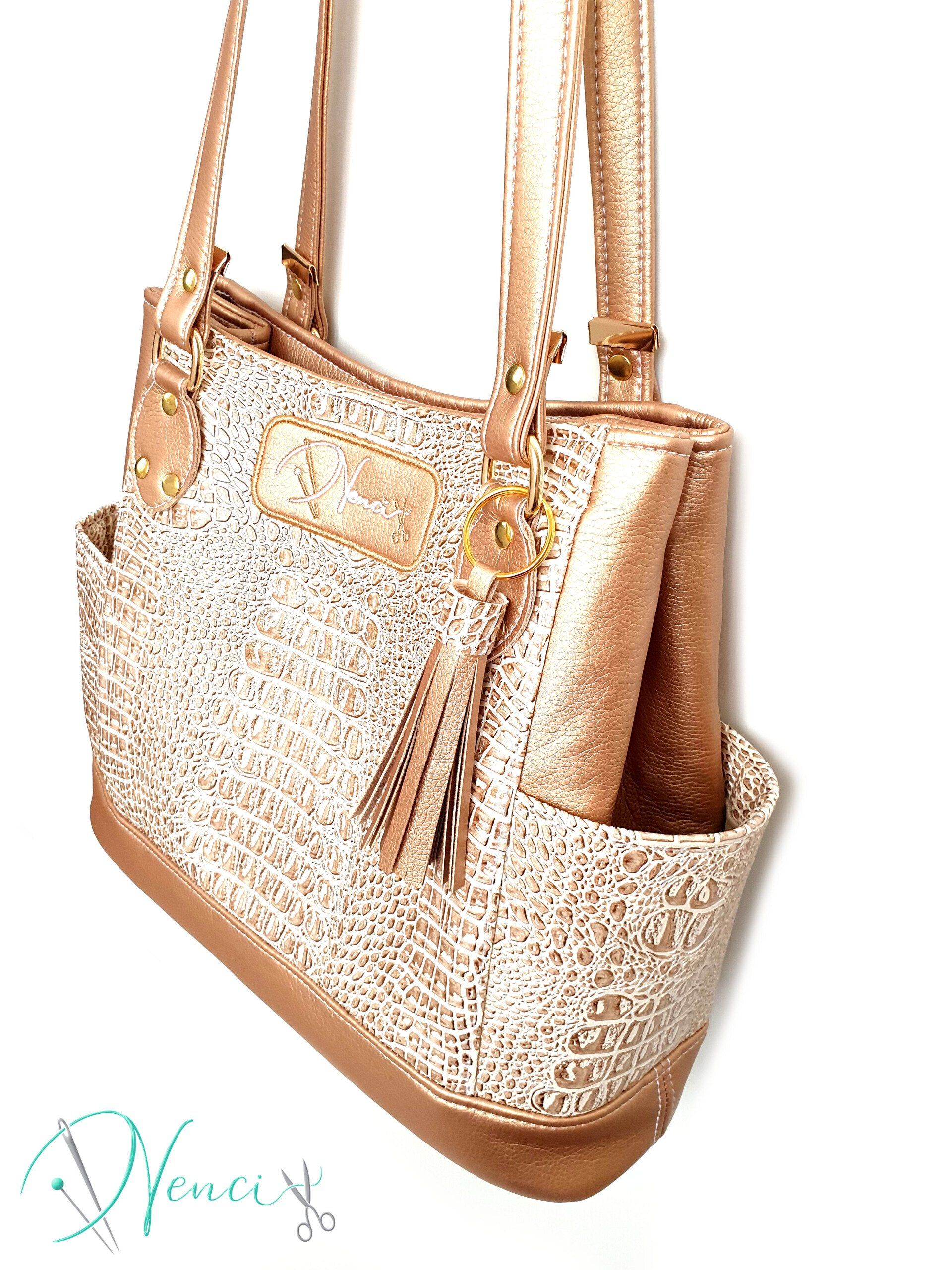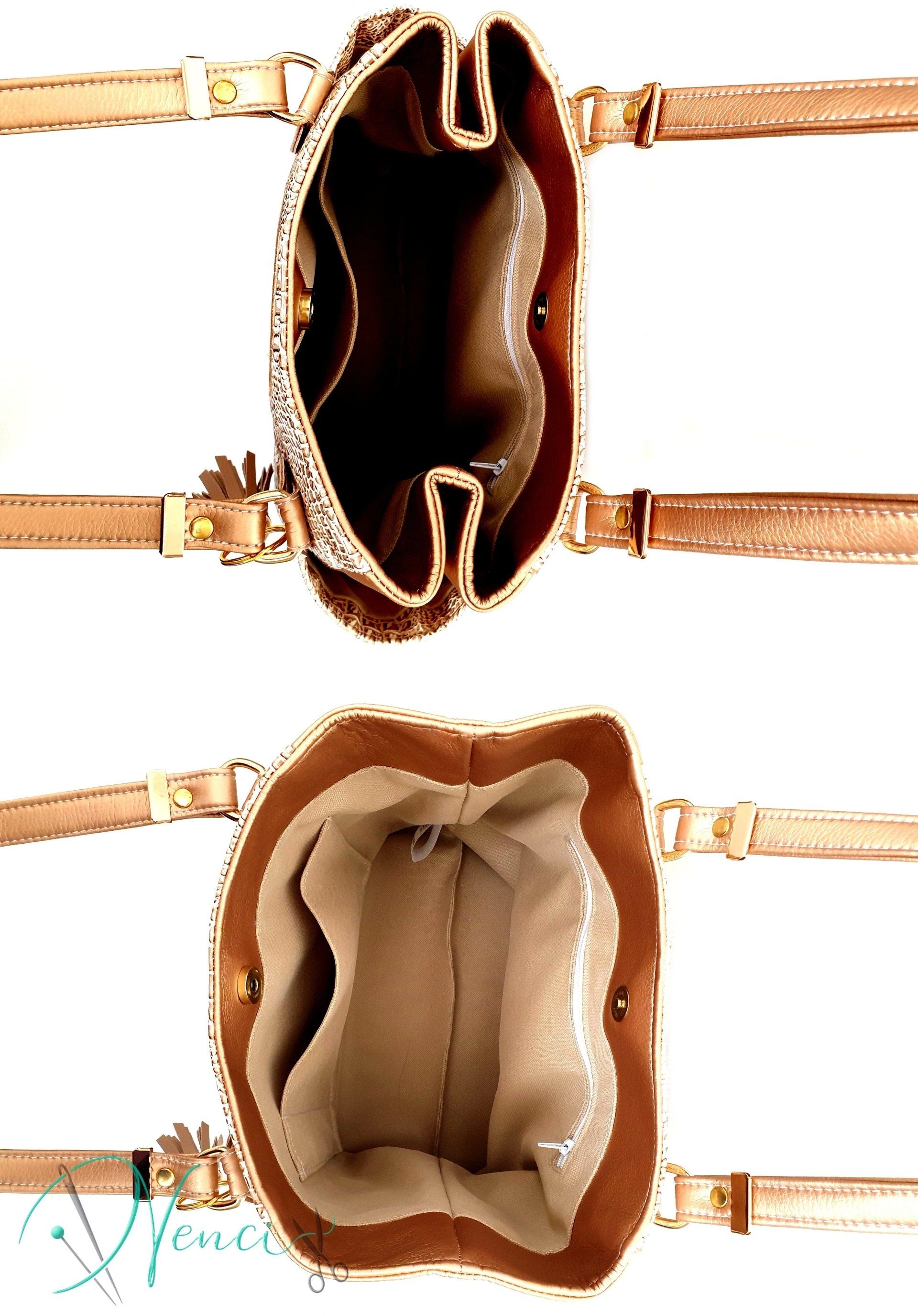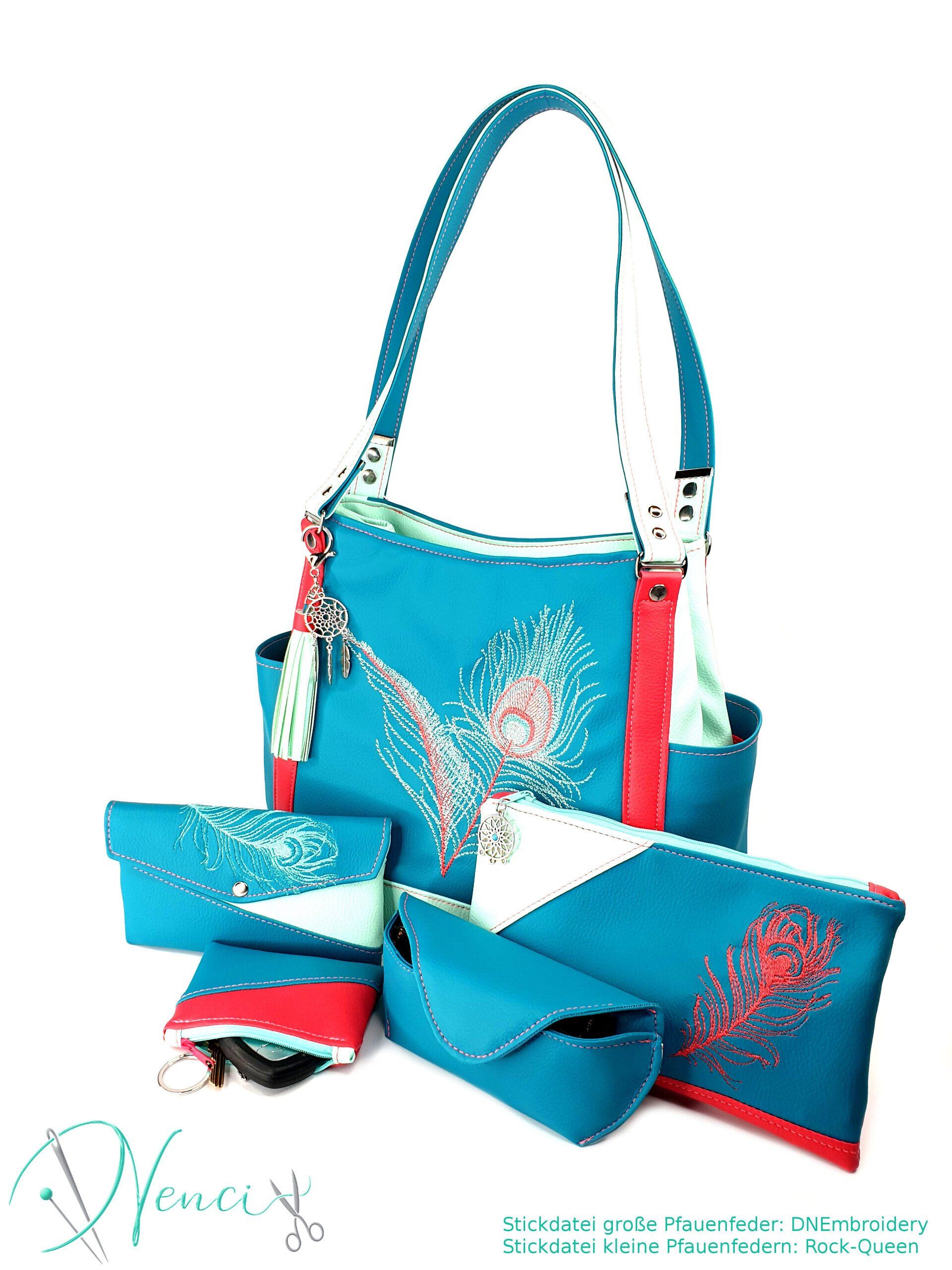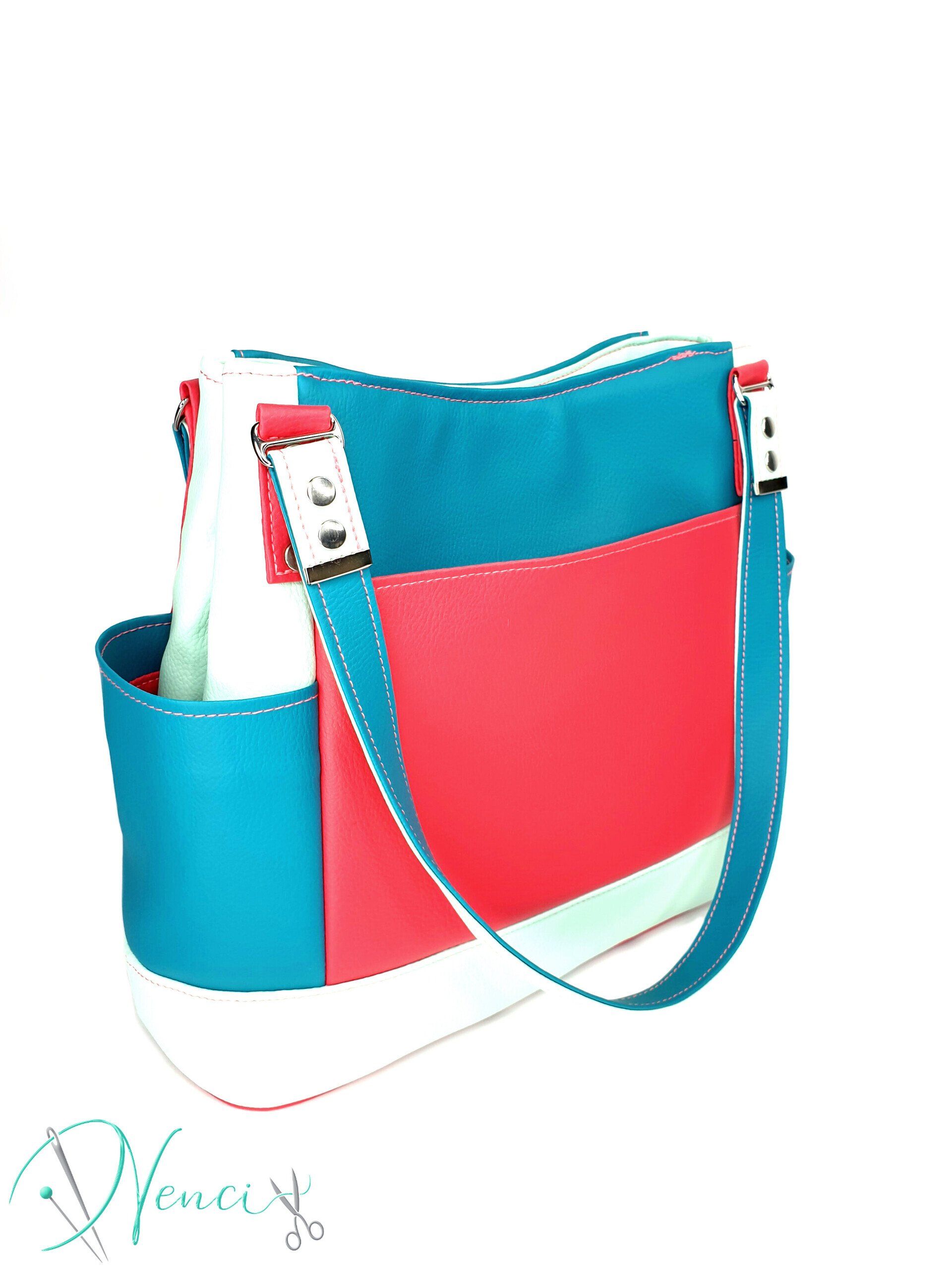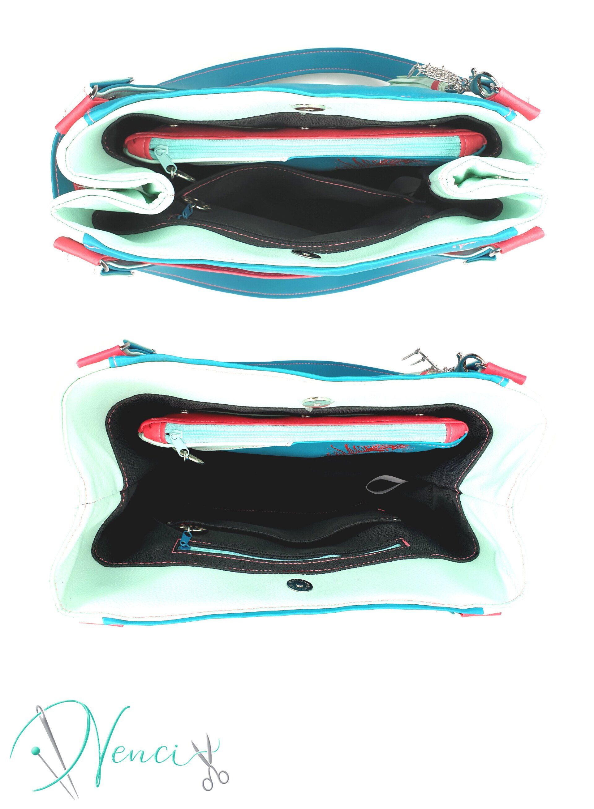Die Tasche kann komplett aus Kunstleder oder auch aus Kunstleder und Baumwollstoff, ein- oder zweifarbig genäht werden.