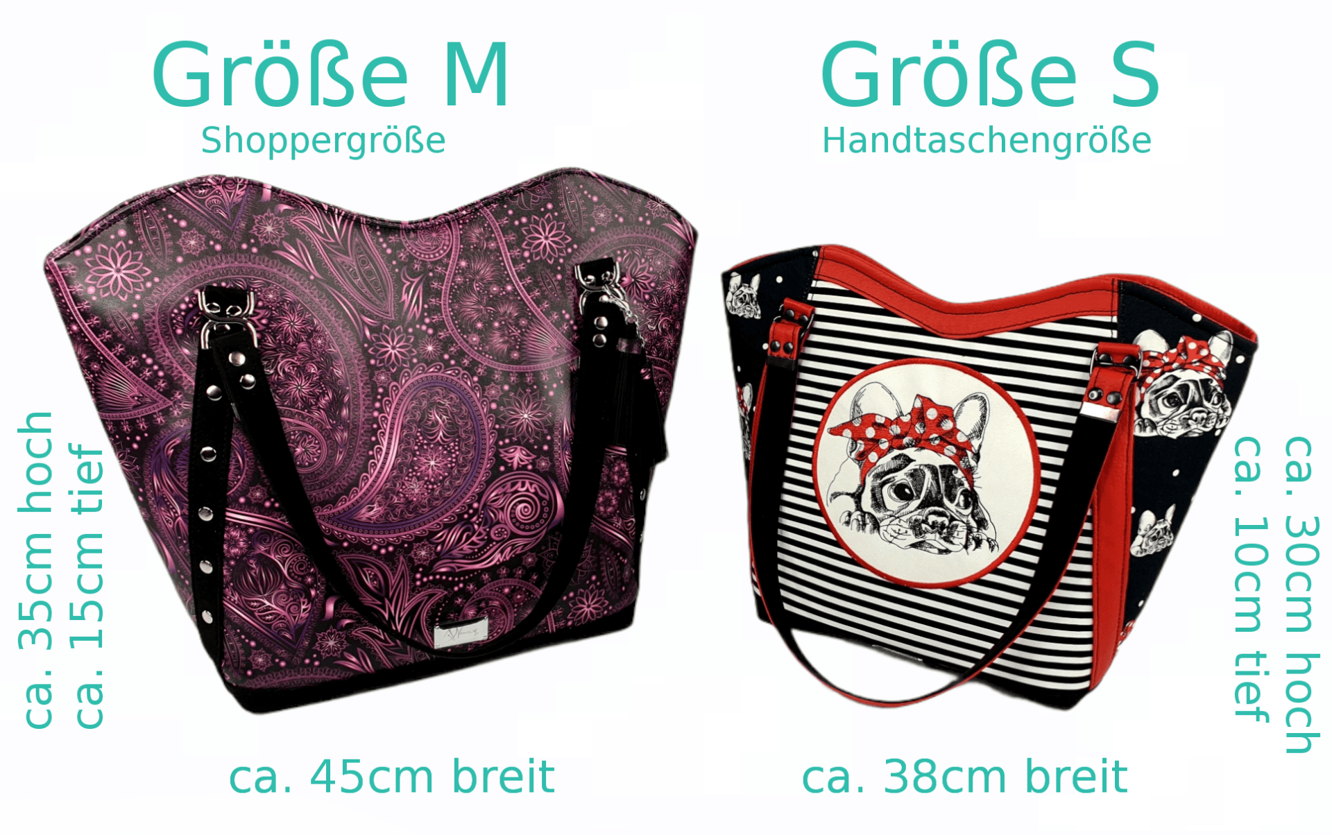 Die normale Größe dient als normale Handtasche, die große Größe eher als Shopper.