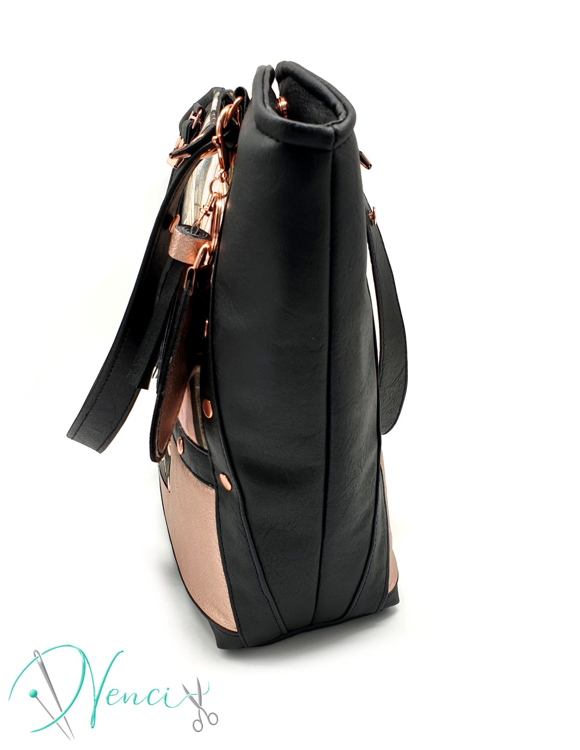Die Tasche kann komplett aus Kunstleder oder auch aus Kunstleder und Baumwollstoff, ein- oder zweifarbig genäht werden. Deiner Fantasie sind hier keine Grenzen gesetzt, du designst, ich nähe:)