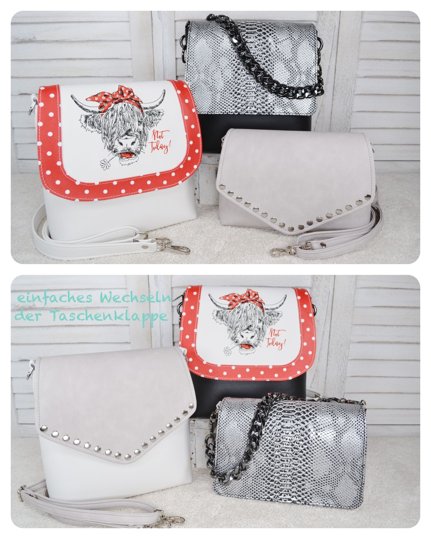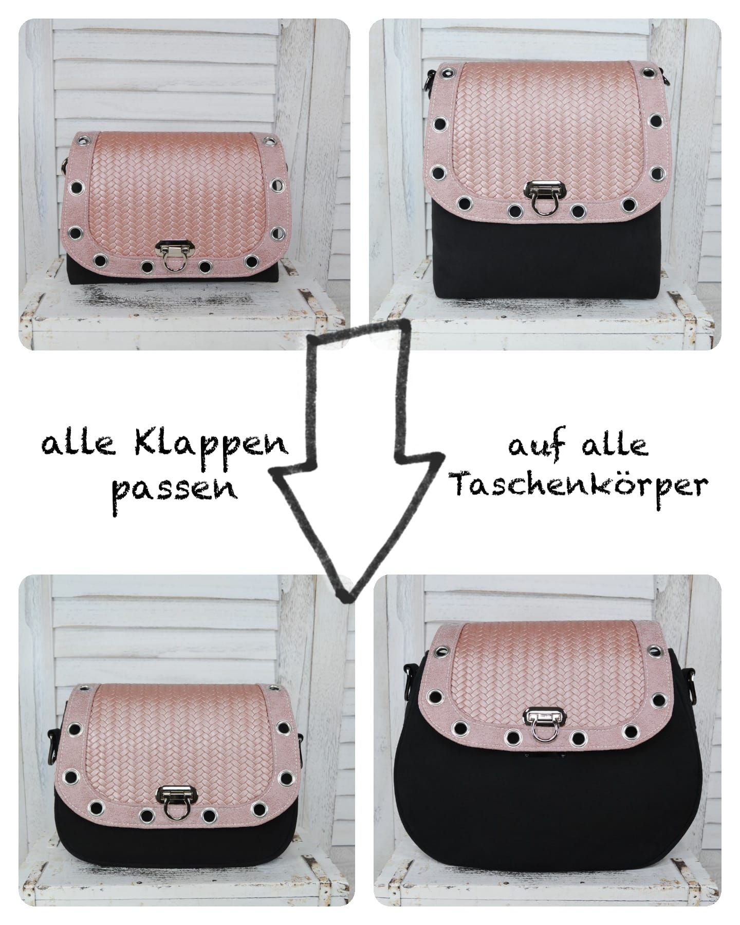 Auch auf diesen rundlichen Taschenkörper passen alle deine Klappen von "Joanne"!