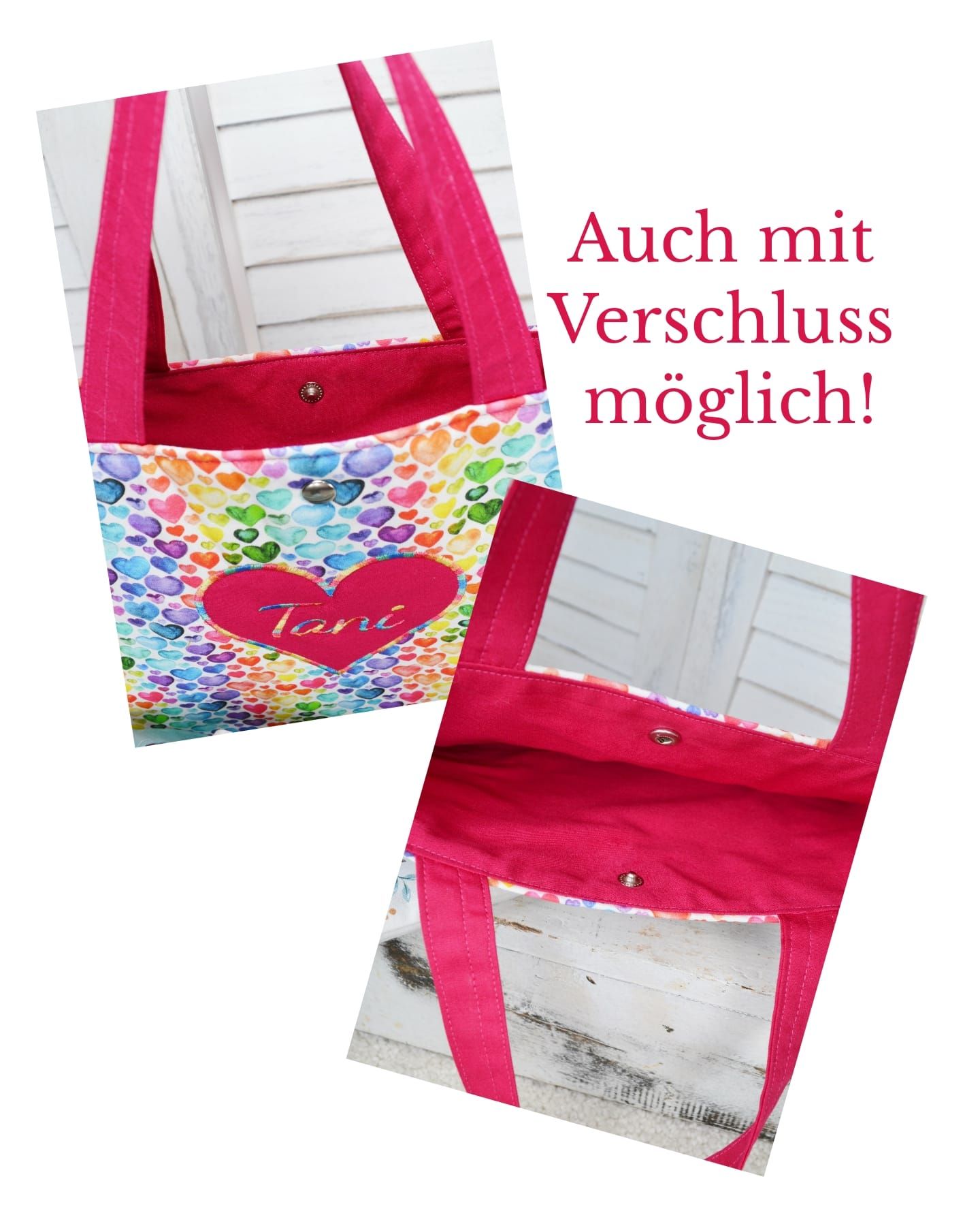 Natürlich kann ich auch einen Druckknopf oder Klettverschluss zum Verschließen der Tasche anbringen.