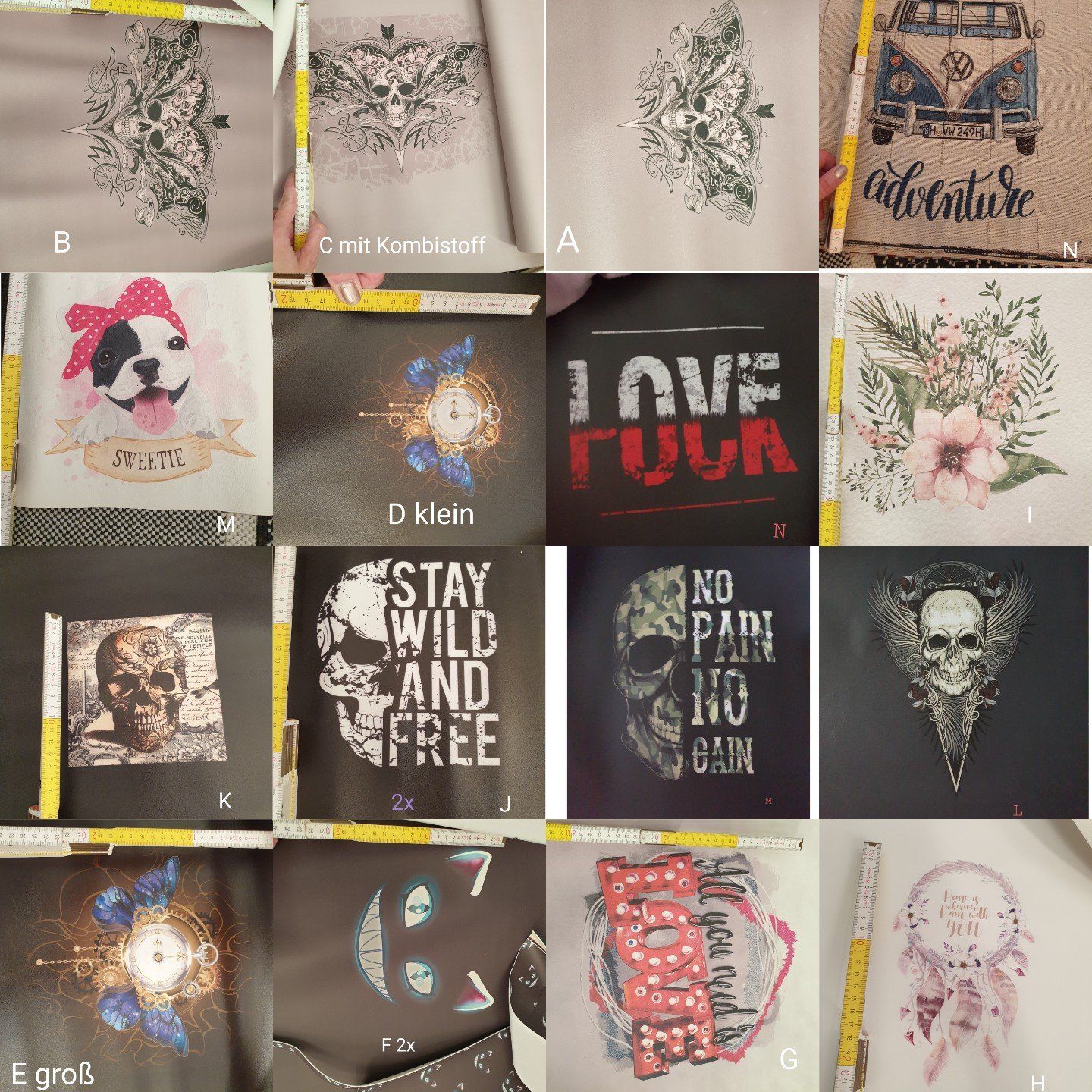 Hier findest du eine Auswahl an Kunstleder, das ich momentan vor Ort habe und was dich vielleicht inspiriert.