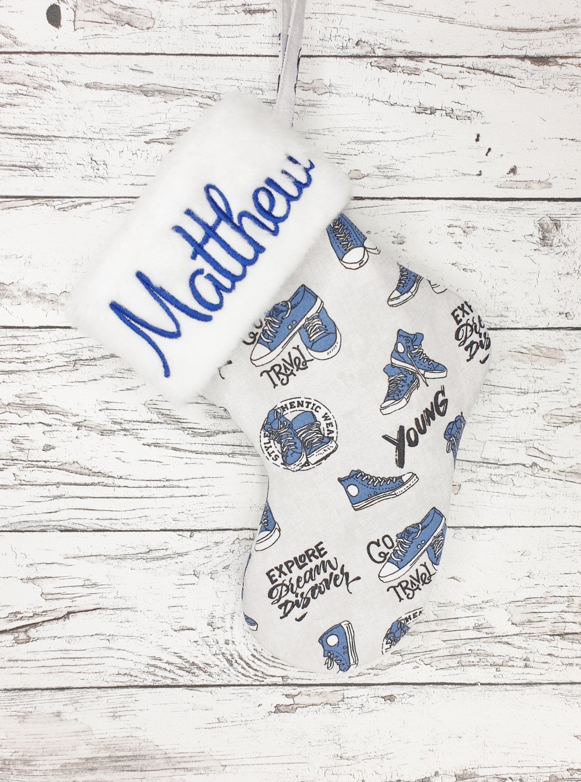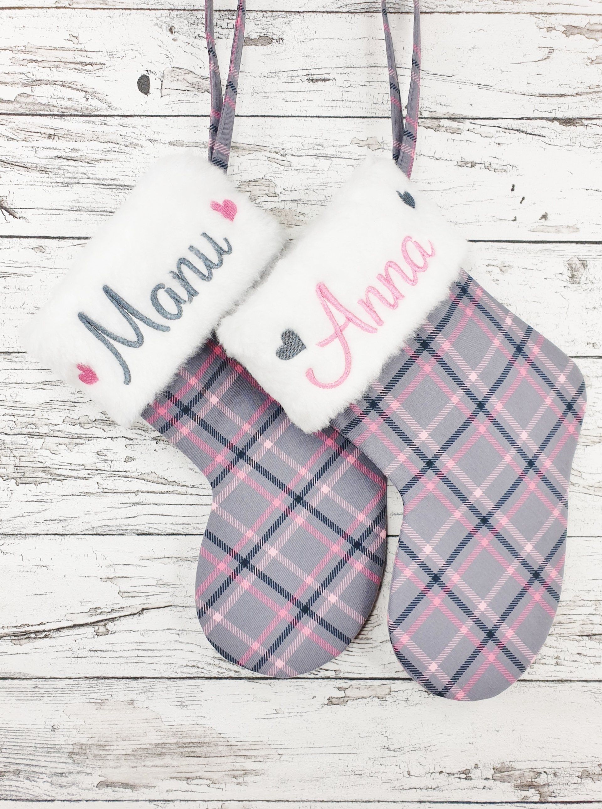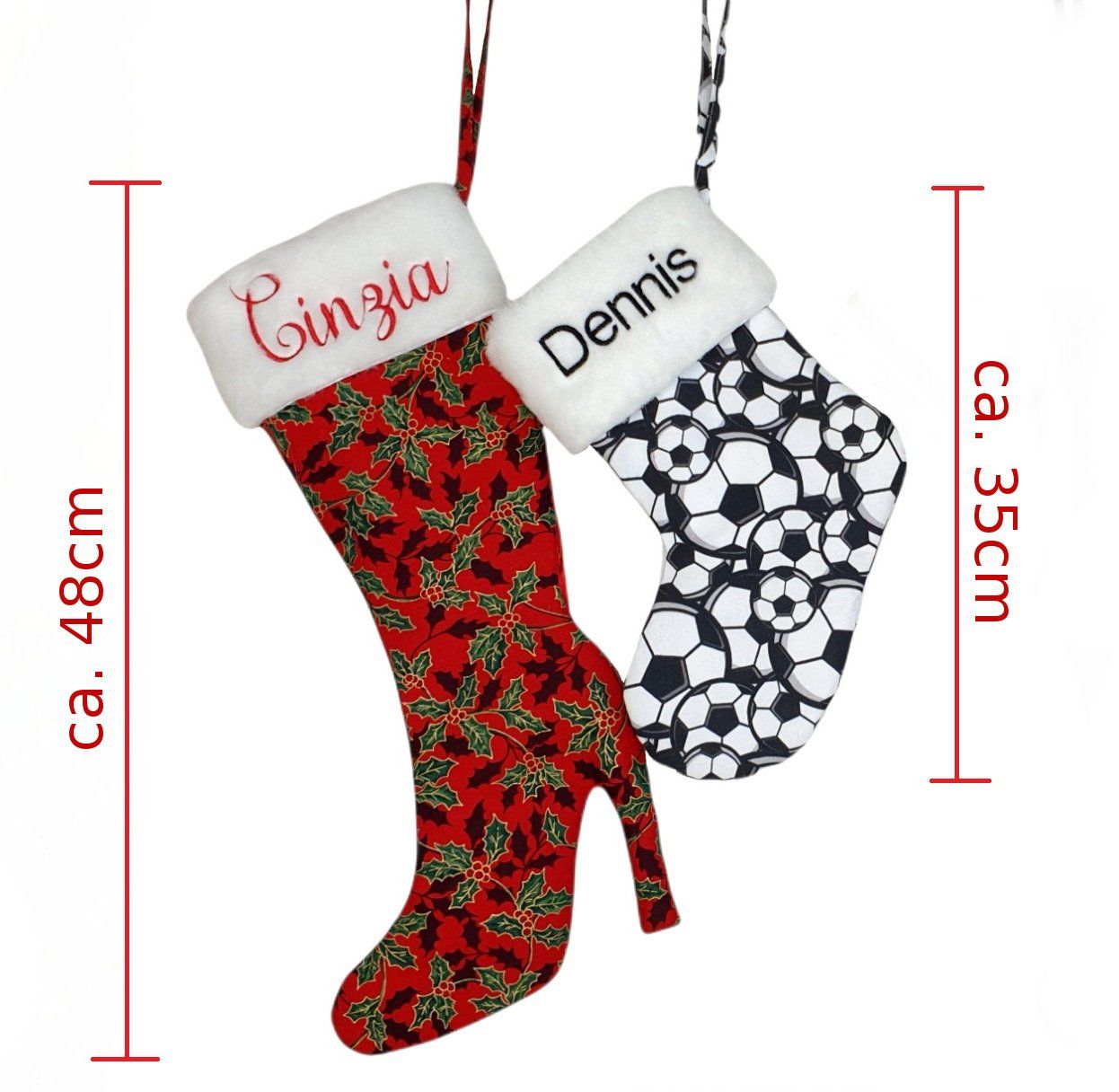 Du kannst deinen High Heel oder deine Socke durch einen gestickten Namen in passender Farbe oder einen abnehmbaren Weihnachtsbaumkugel-Anhänger inkl. Wunschnamen personalisieren.