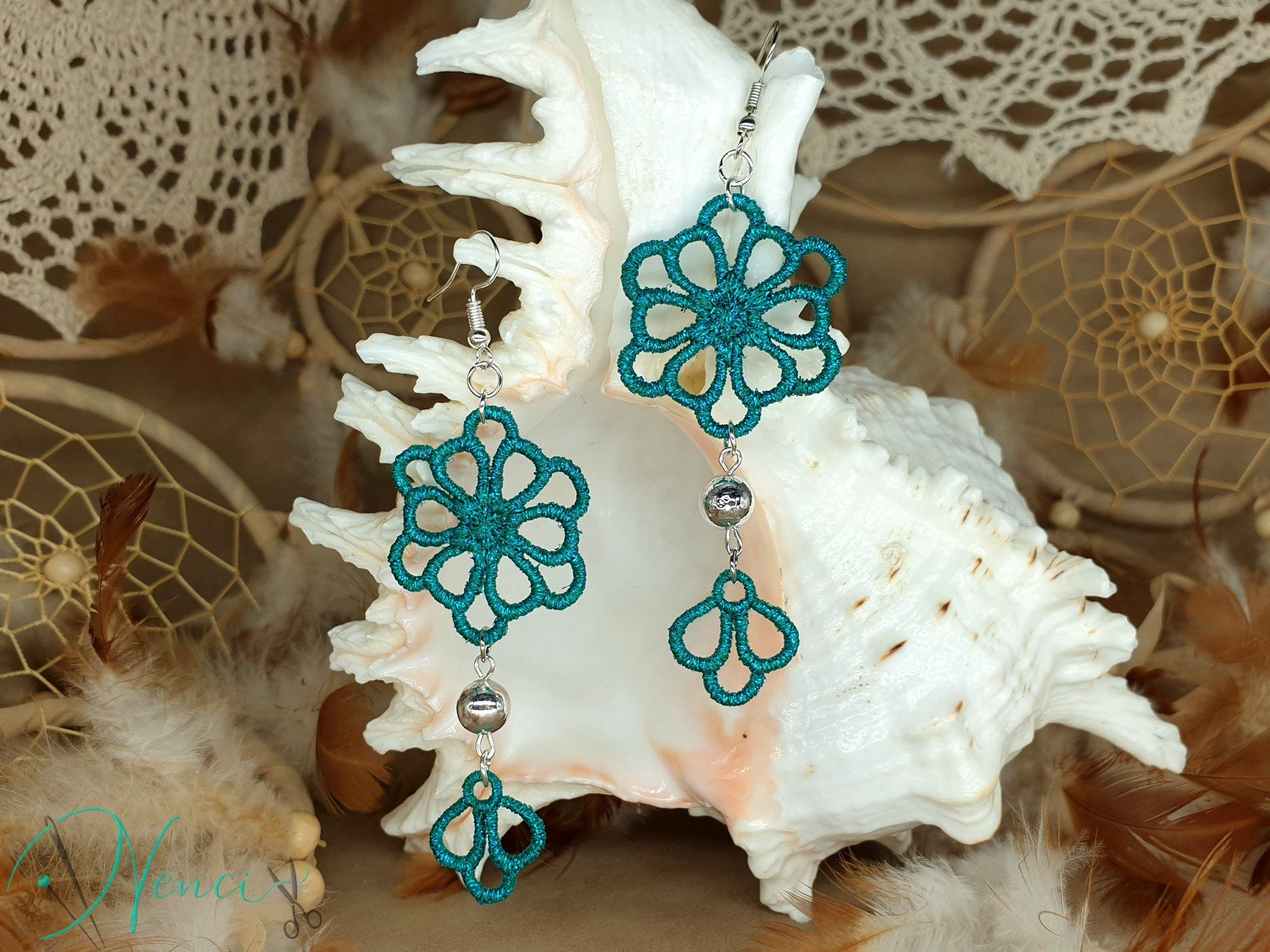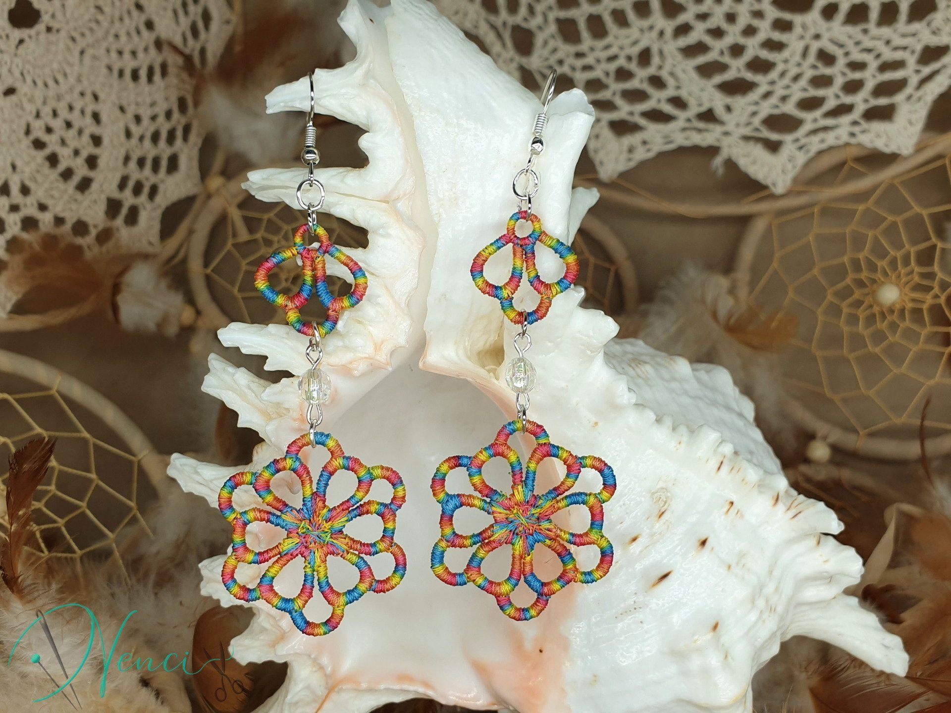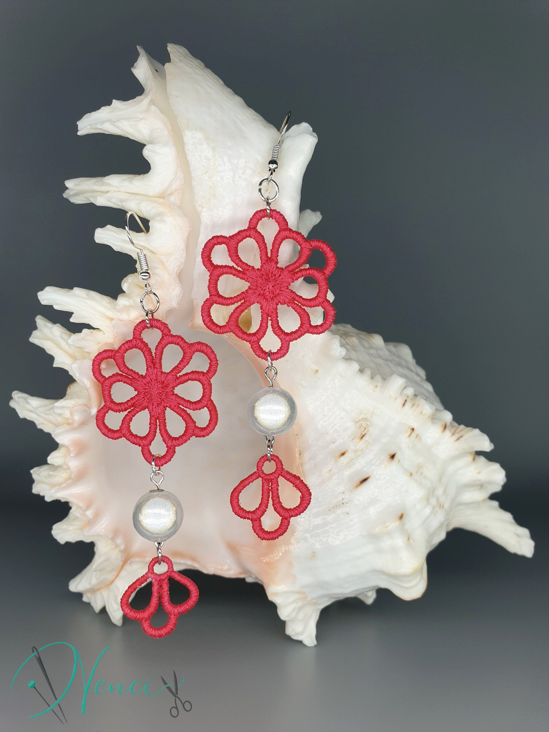 Diese blumigen Ohrringe sind im Free-Standing-Lace-Verfahren