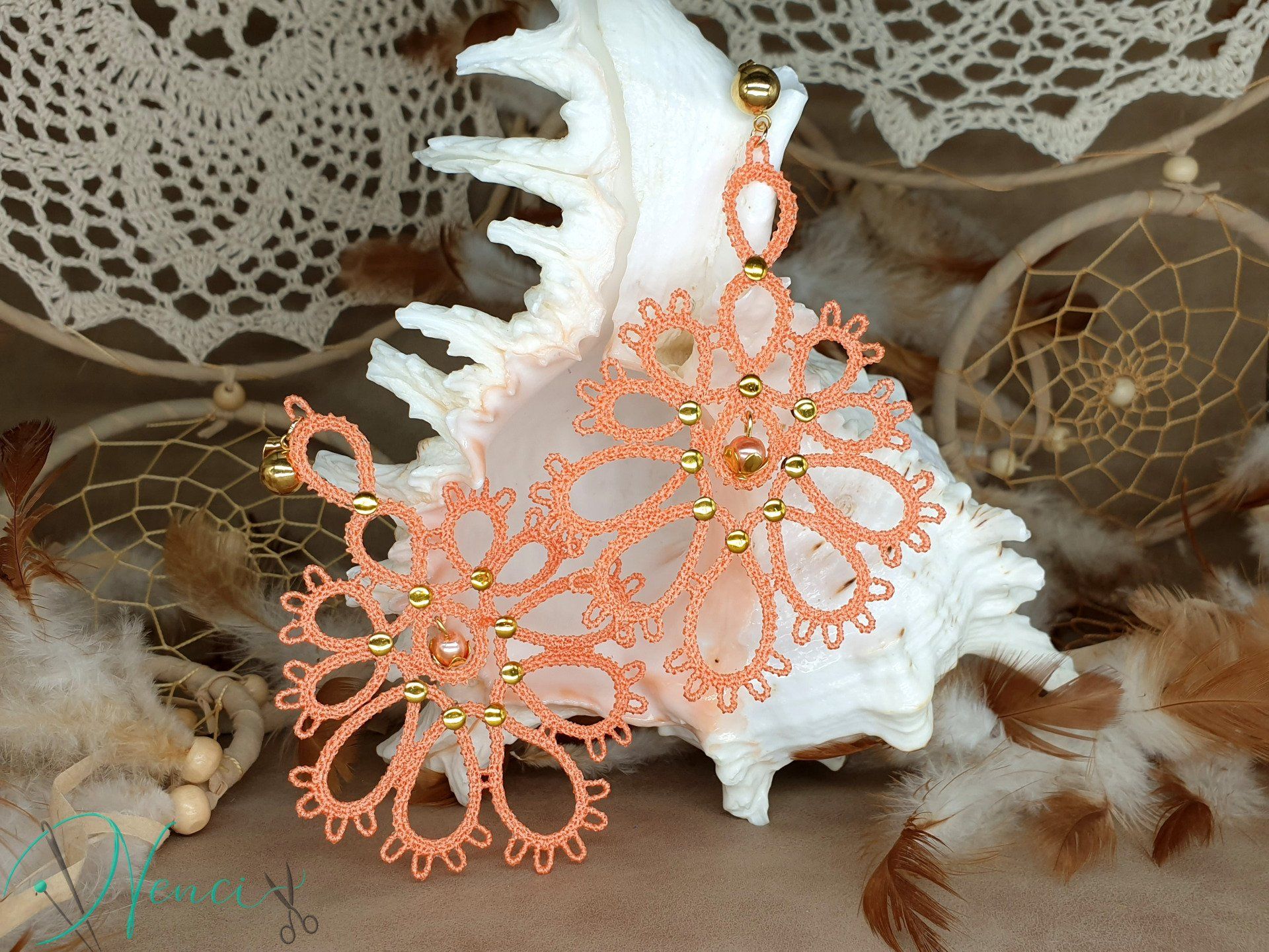 Diese auffälligen Statement-Ohrringe sind im Free-Standing-Lace-Verfahren