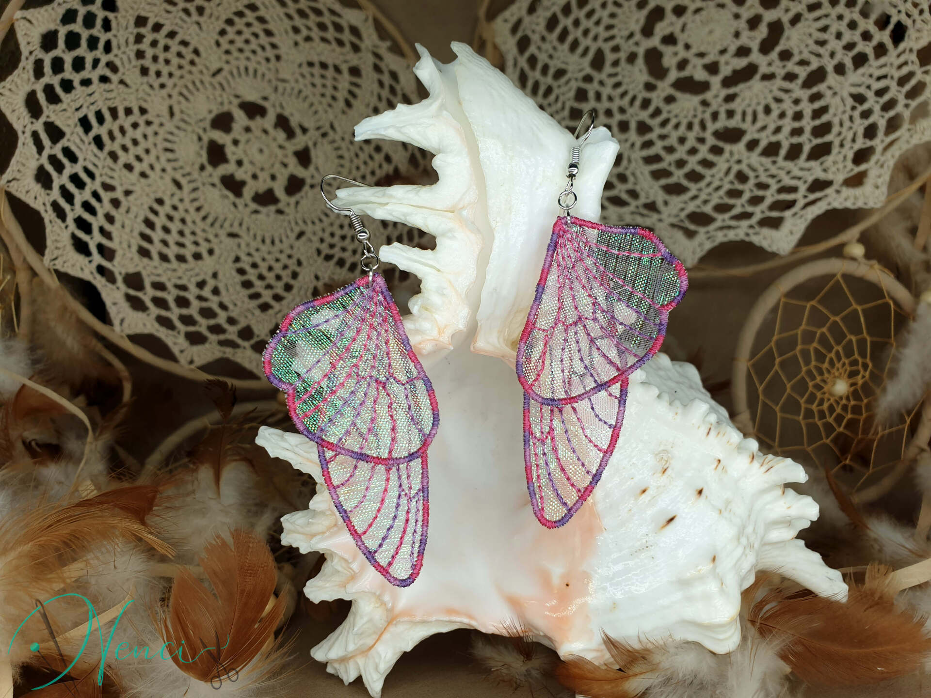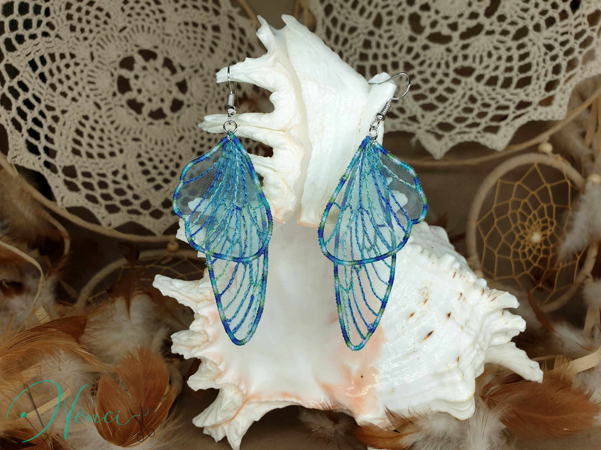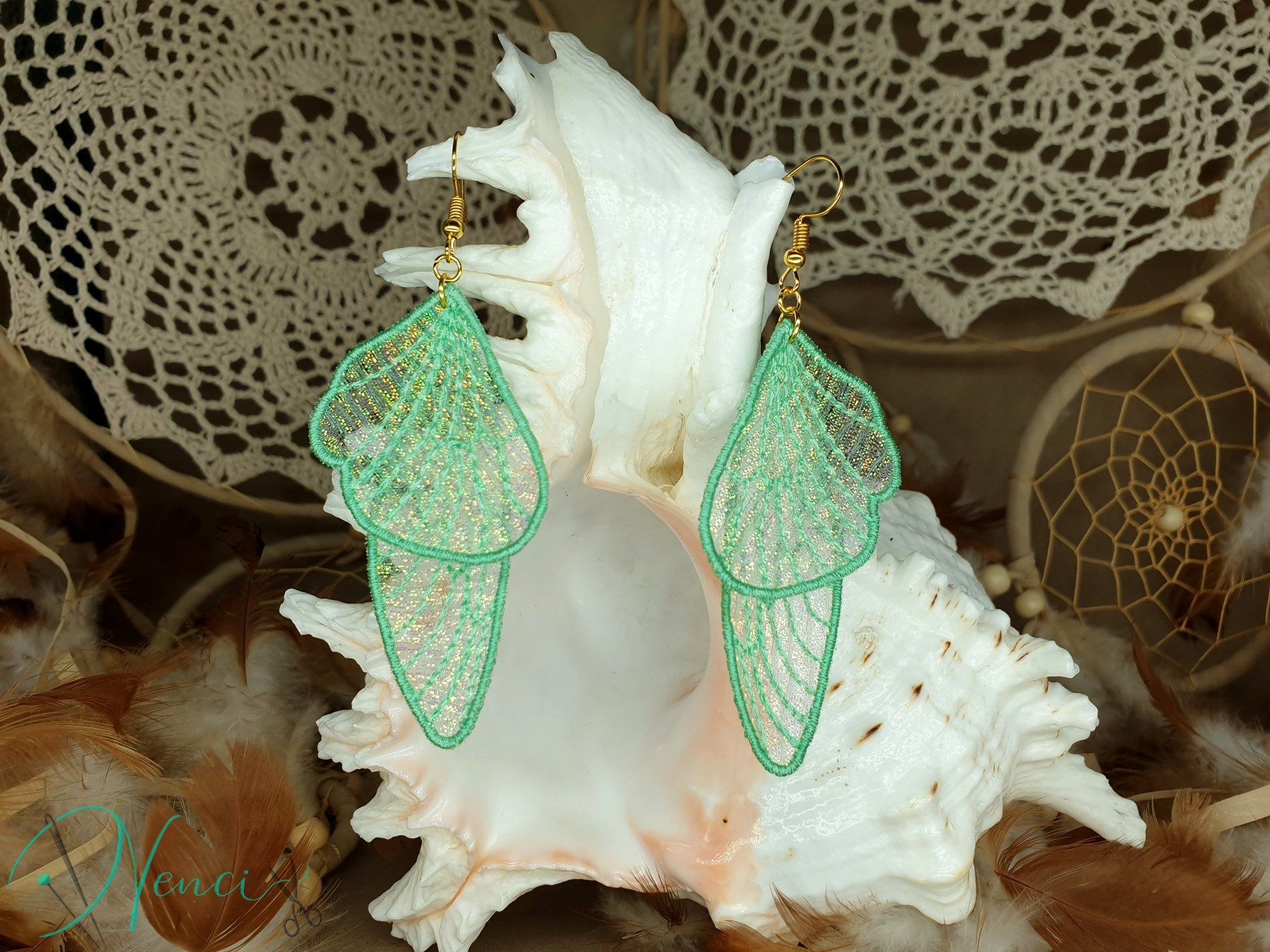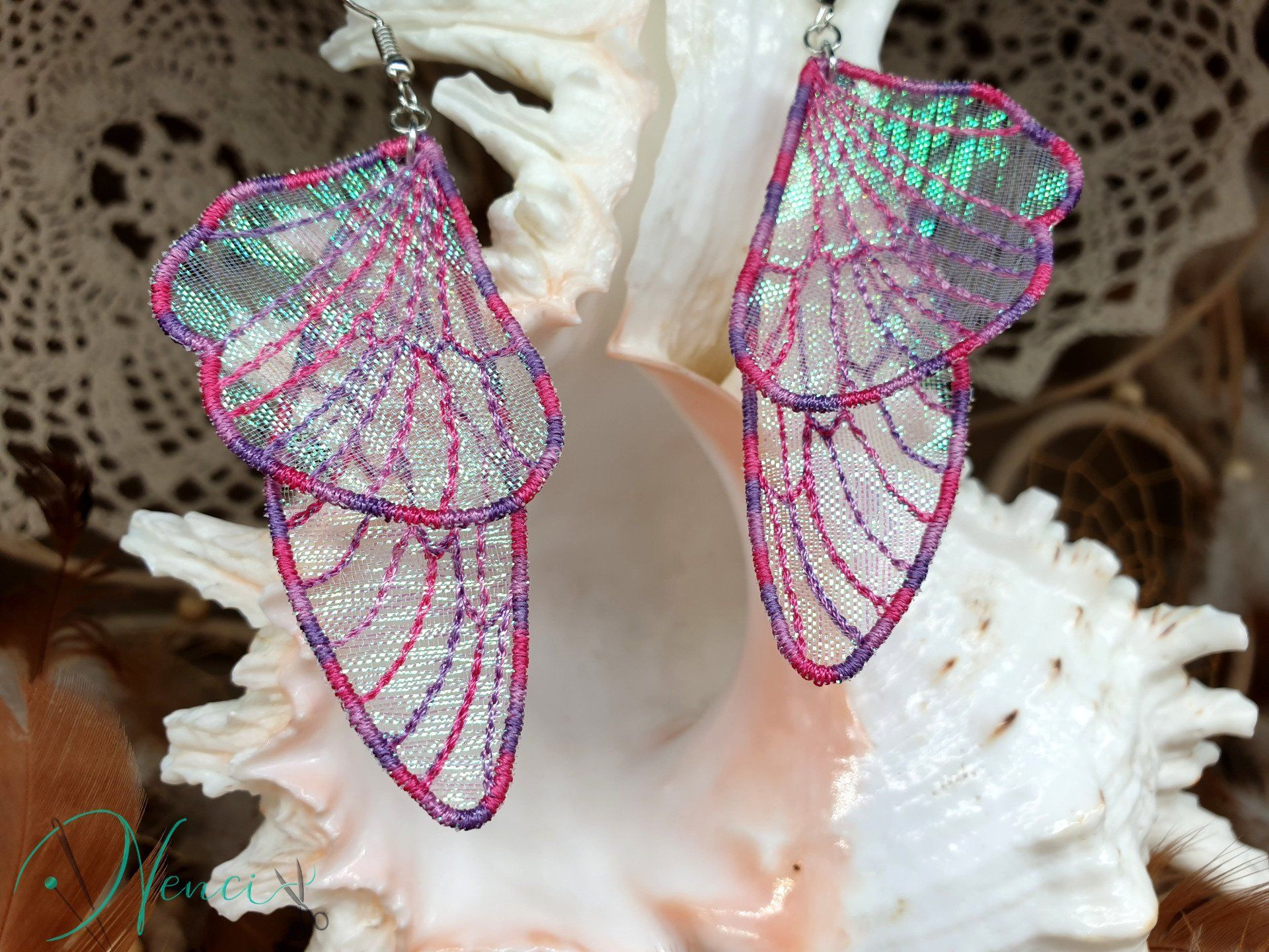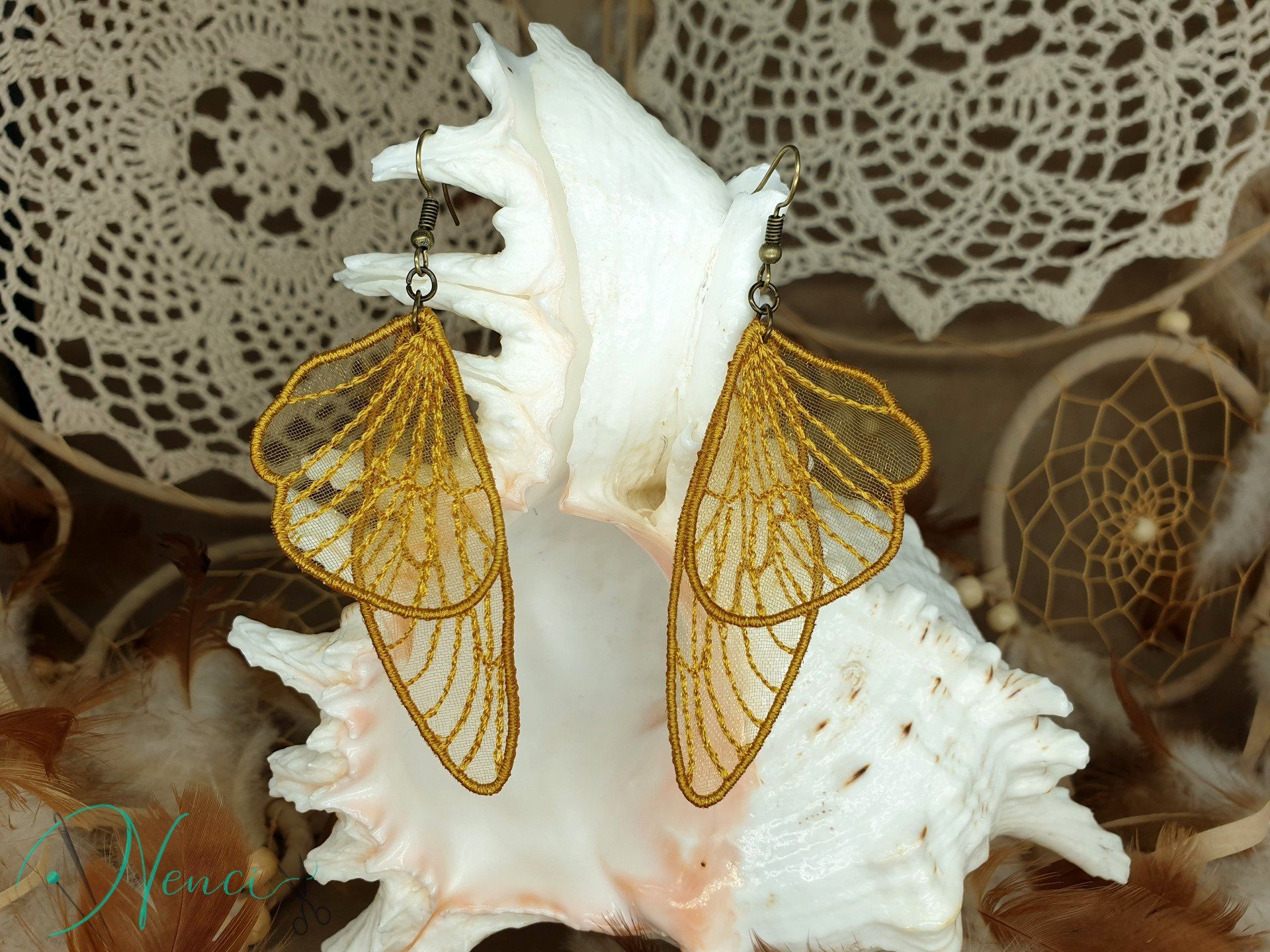 Diese bezaubernden Ohrringe sind im Free-Standing-Lace-Verfahren