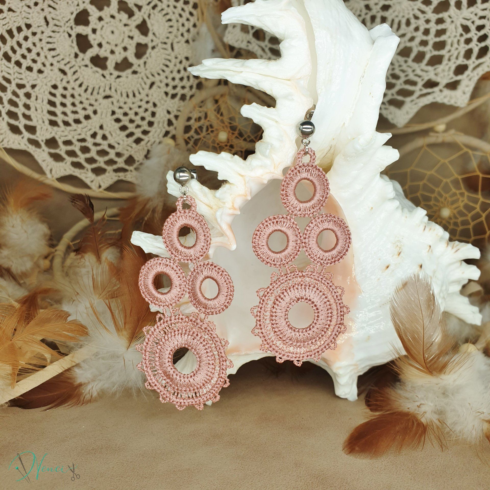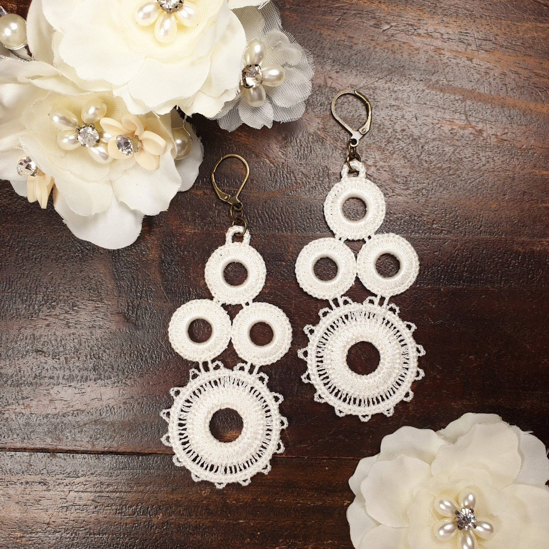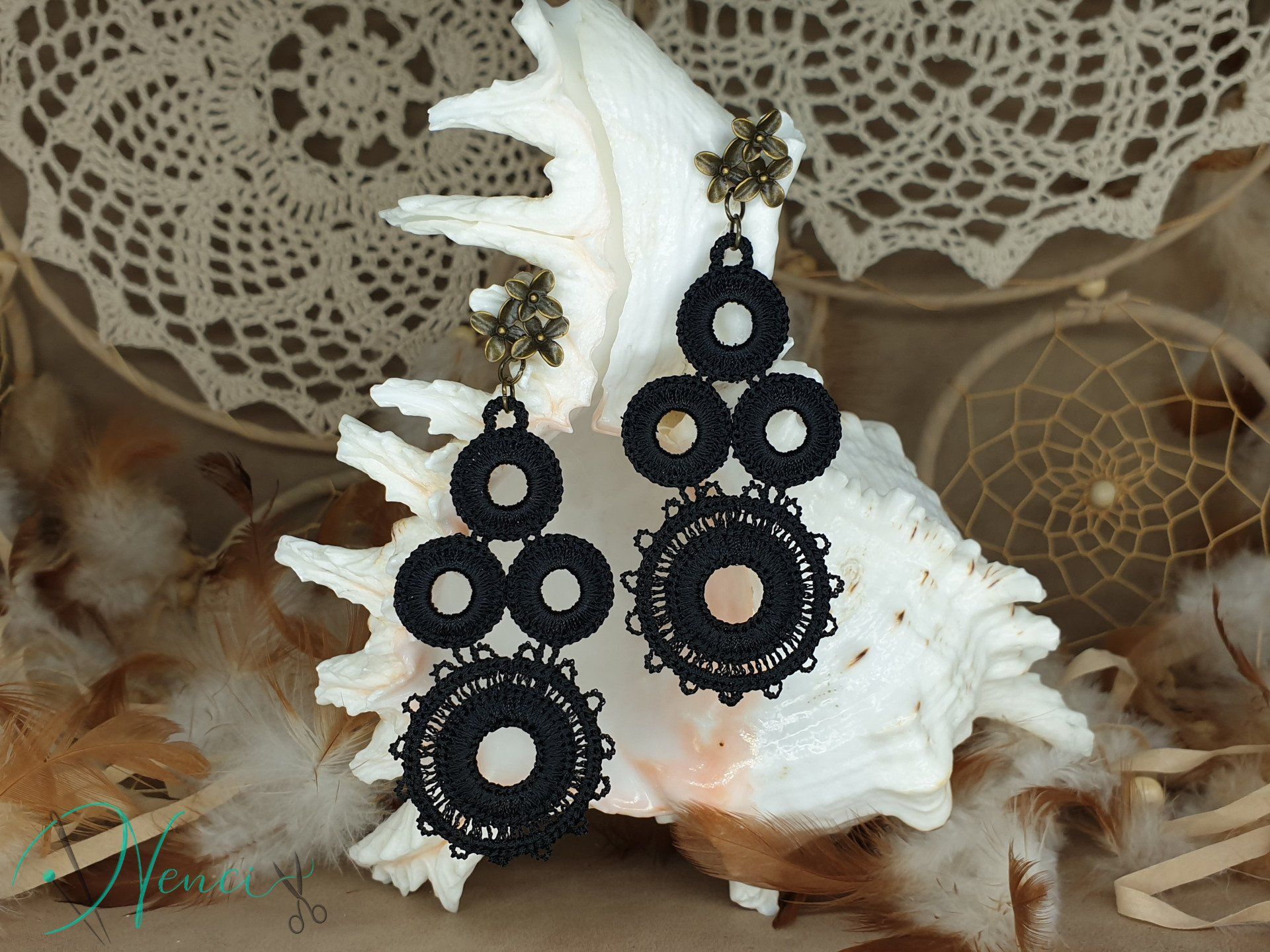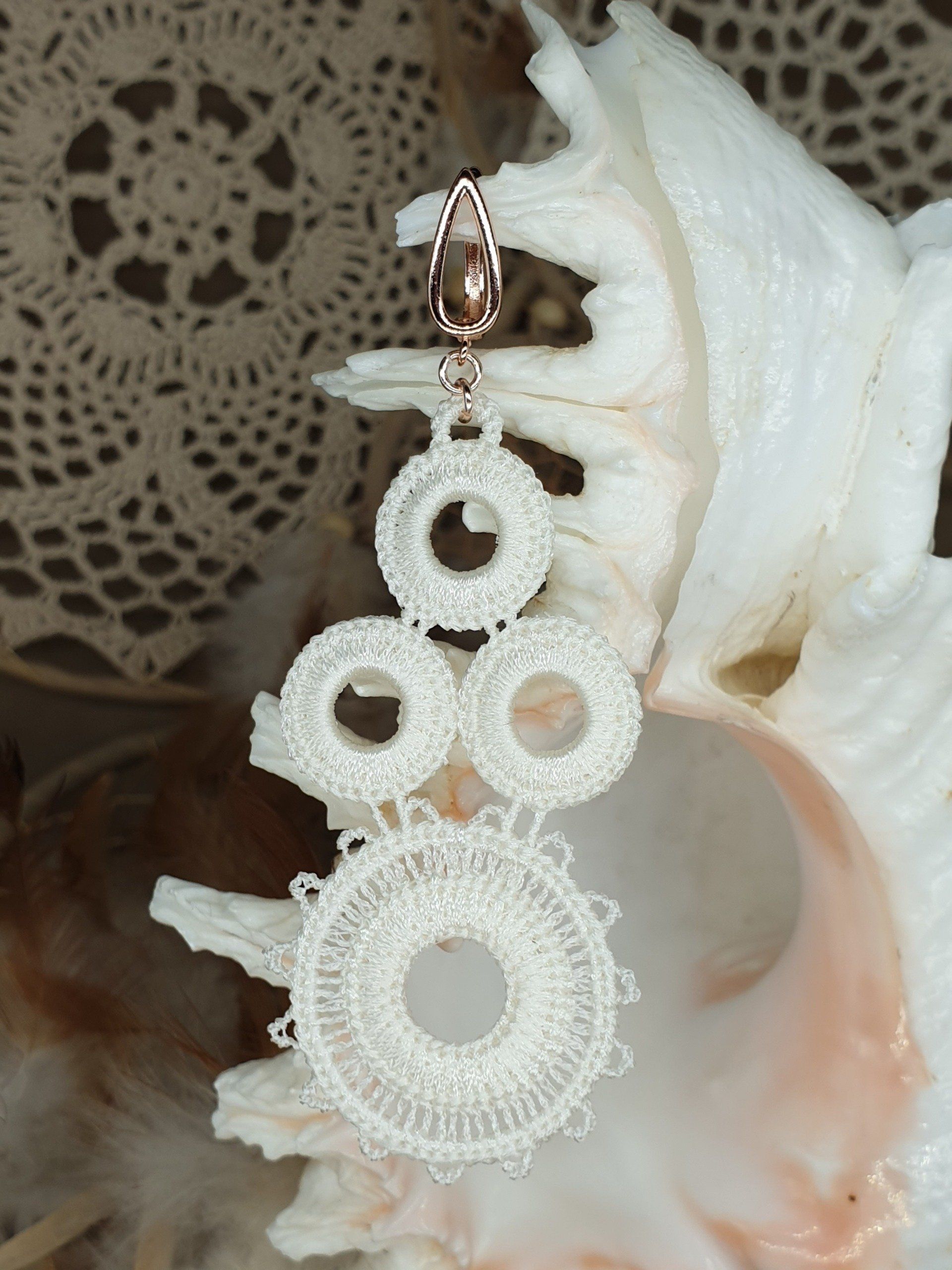 Diese wunderschönen Ohrringe und das Armband sind im Free-Standing-Lace-Verfahren