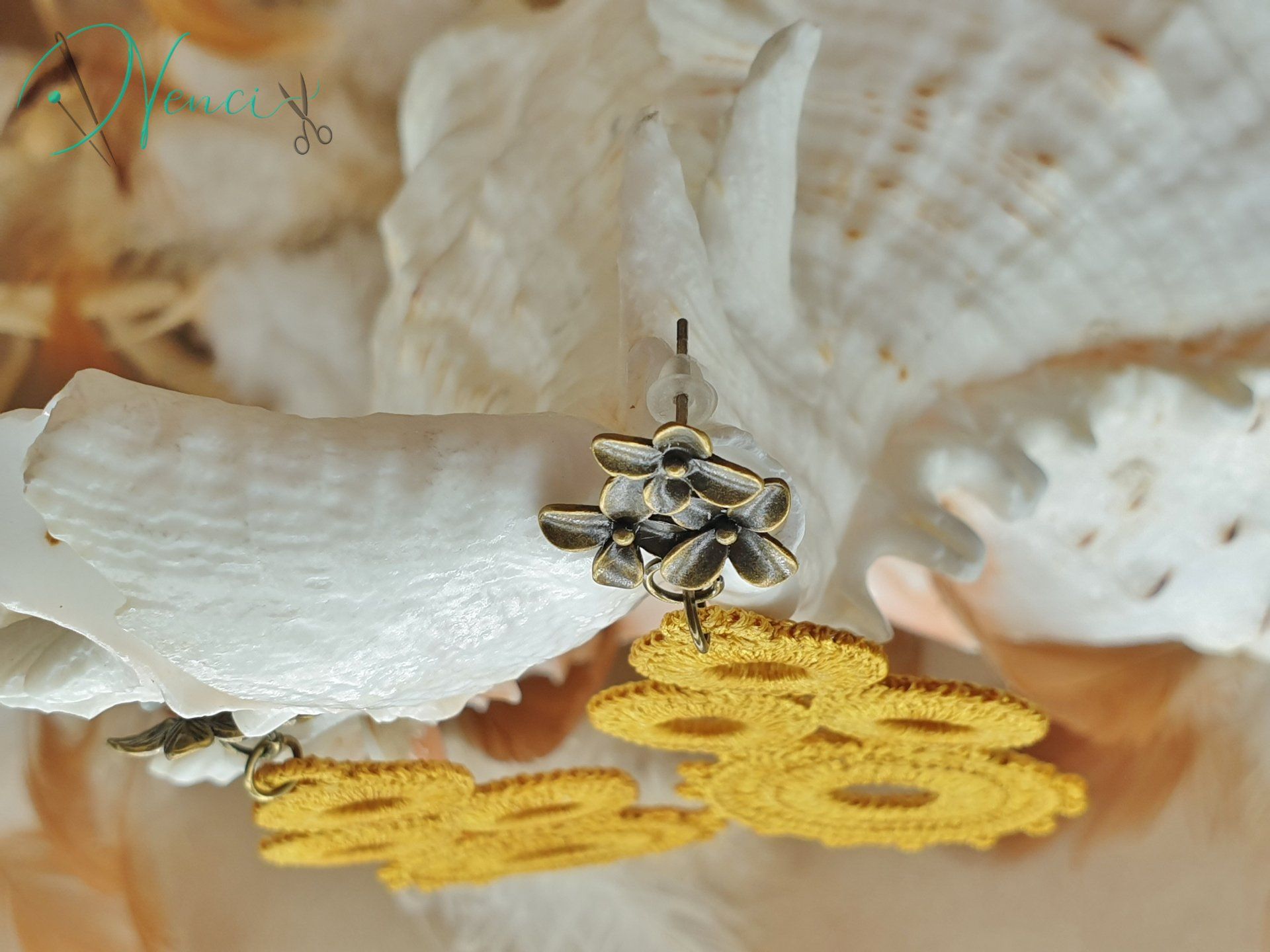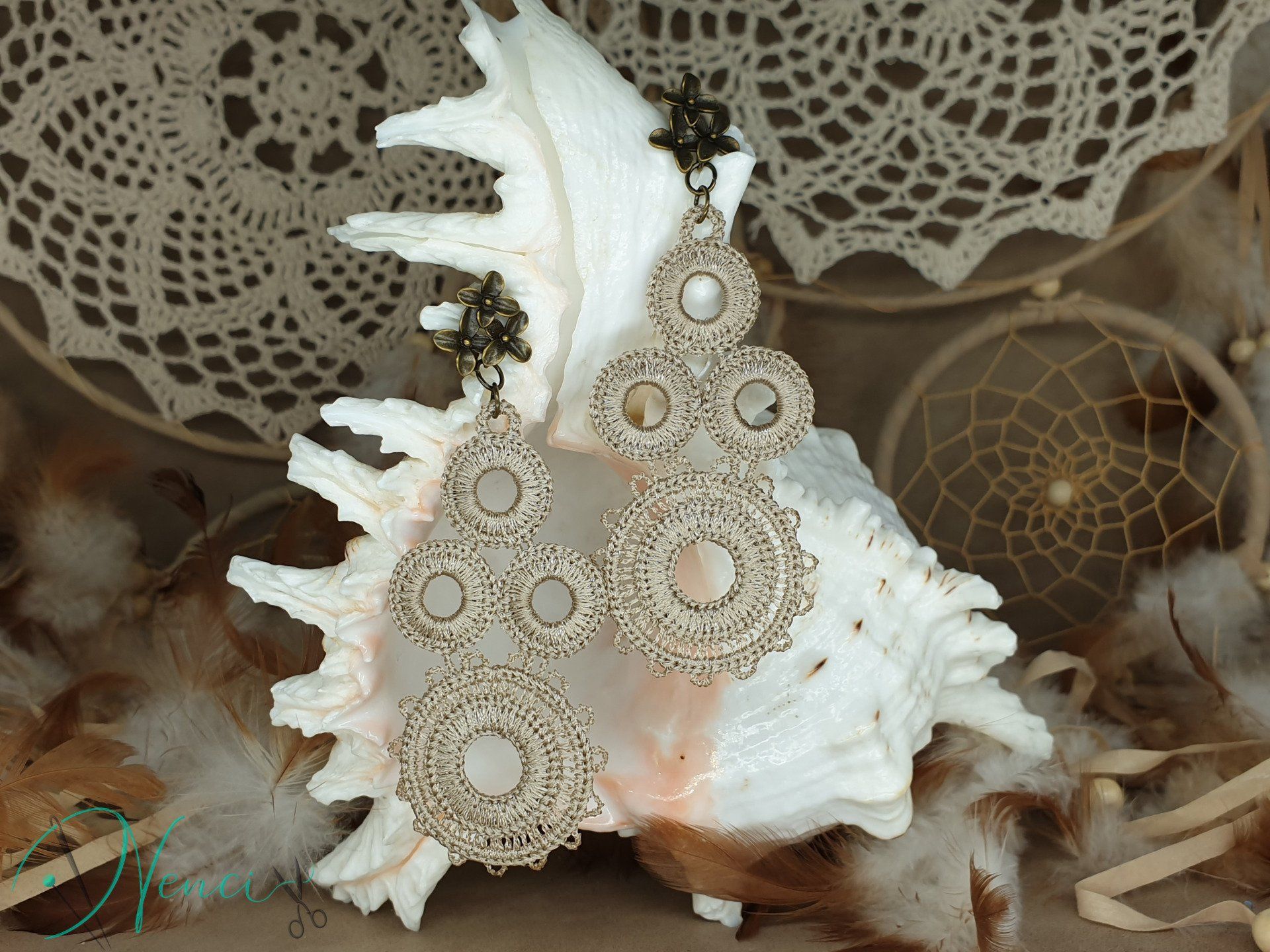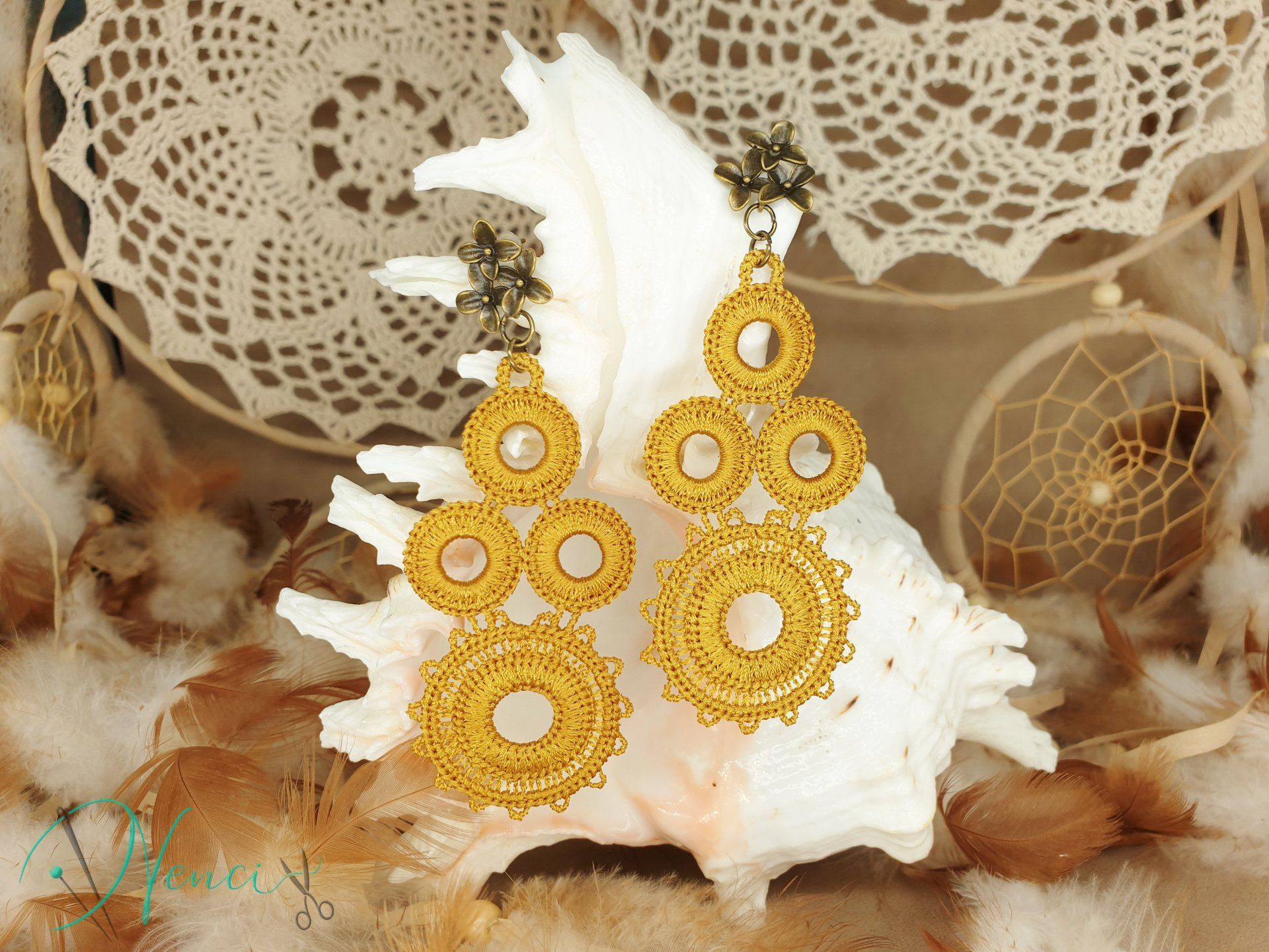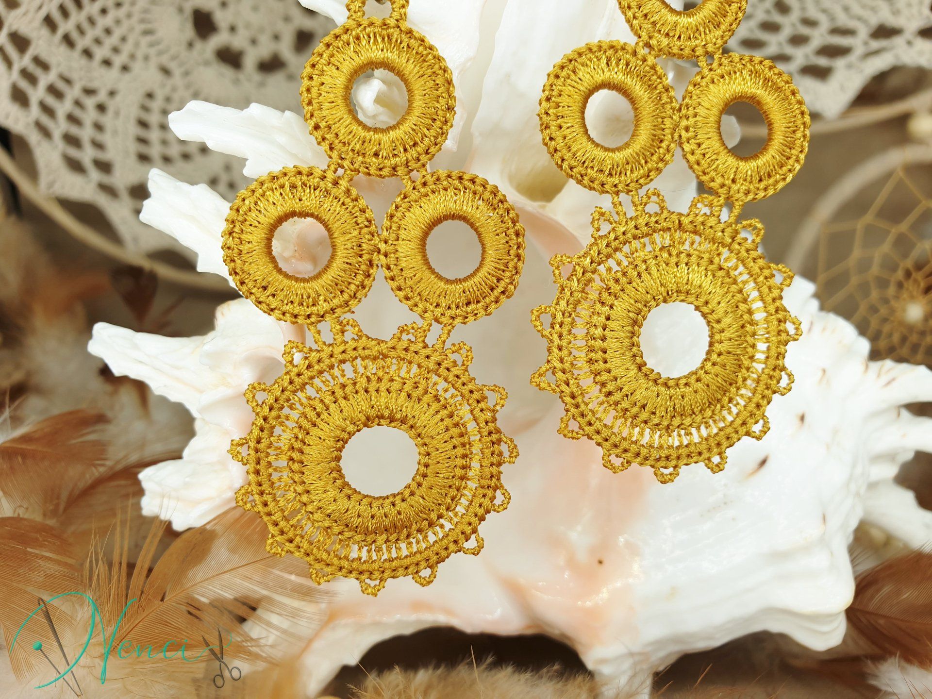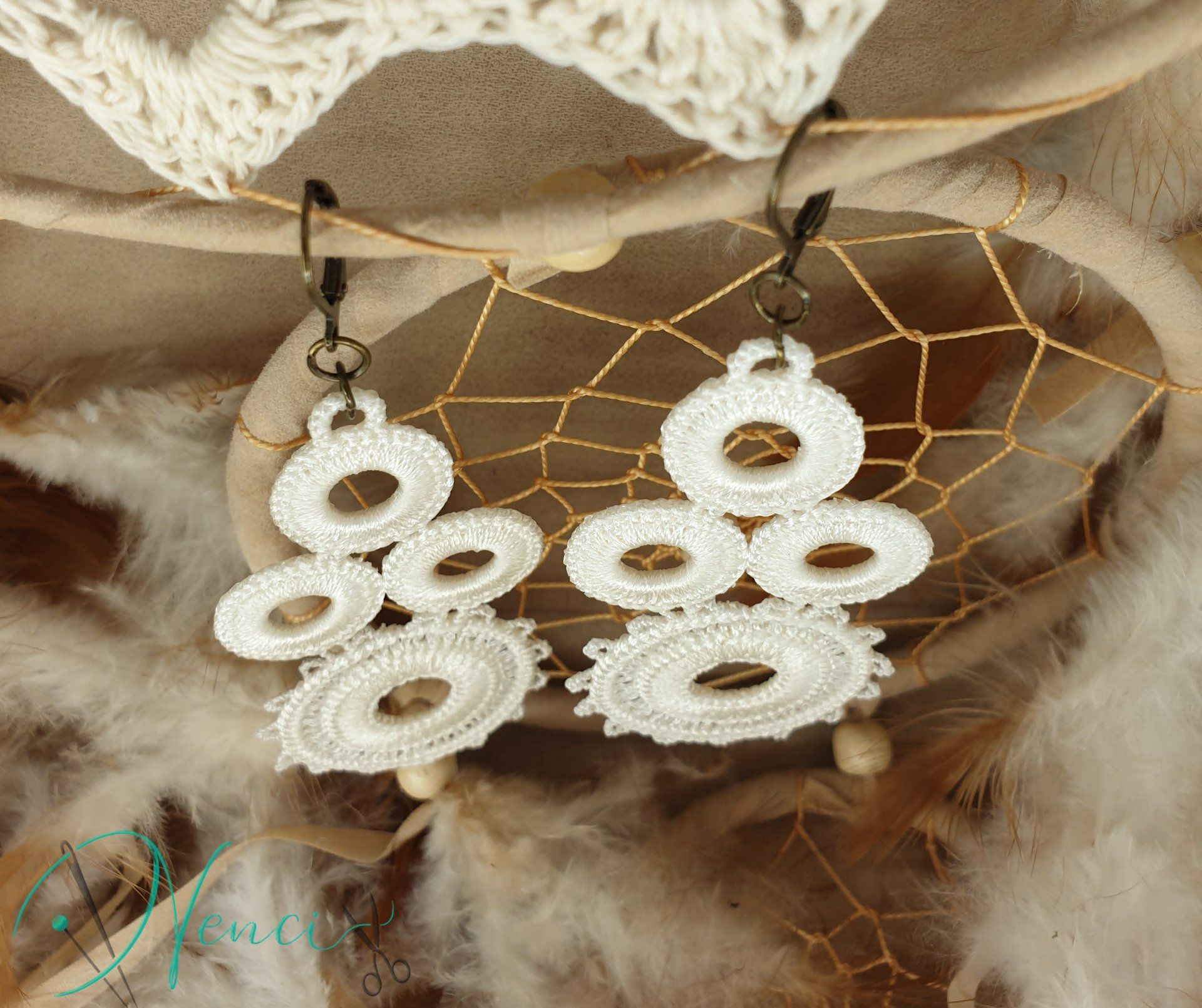 Diese wunderschönen Ohrringe und das Armband sind im Free-Standing-Lace-Verfahren