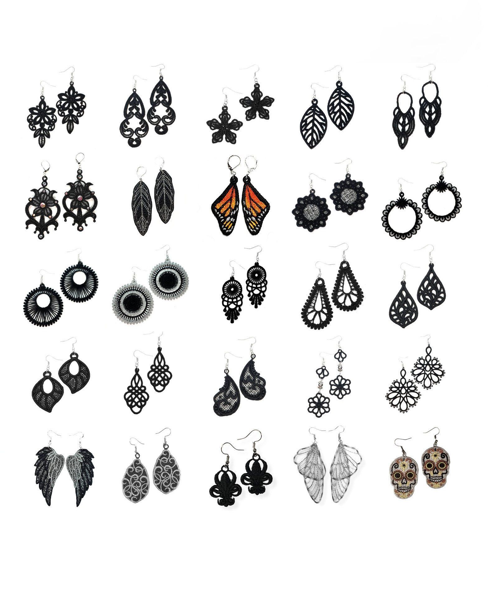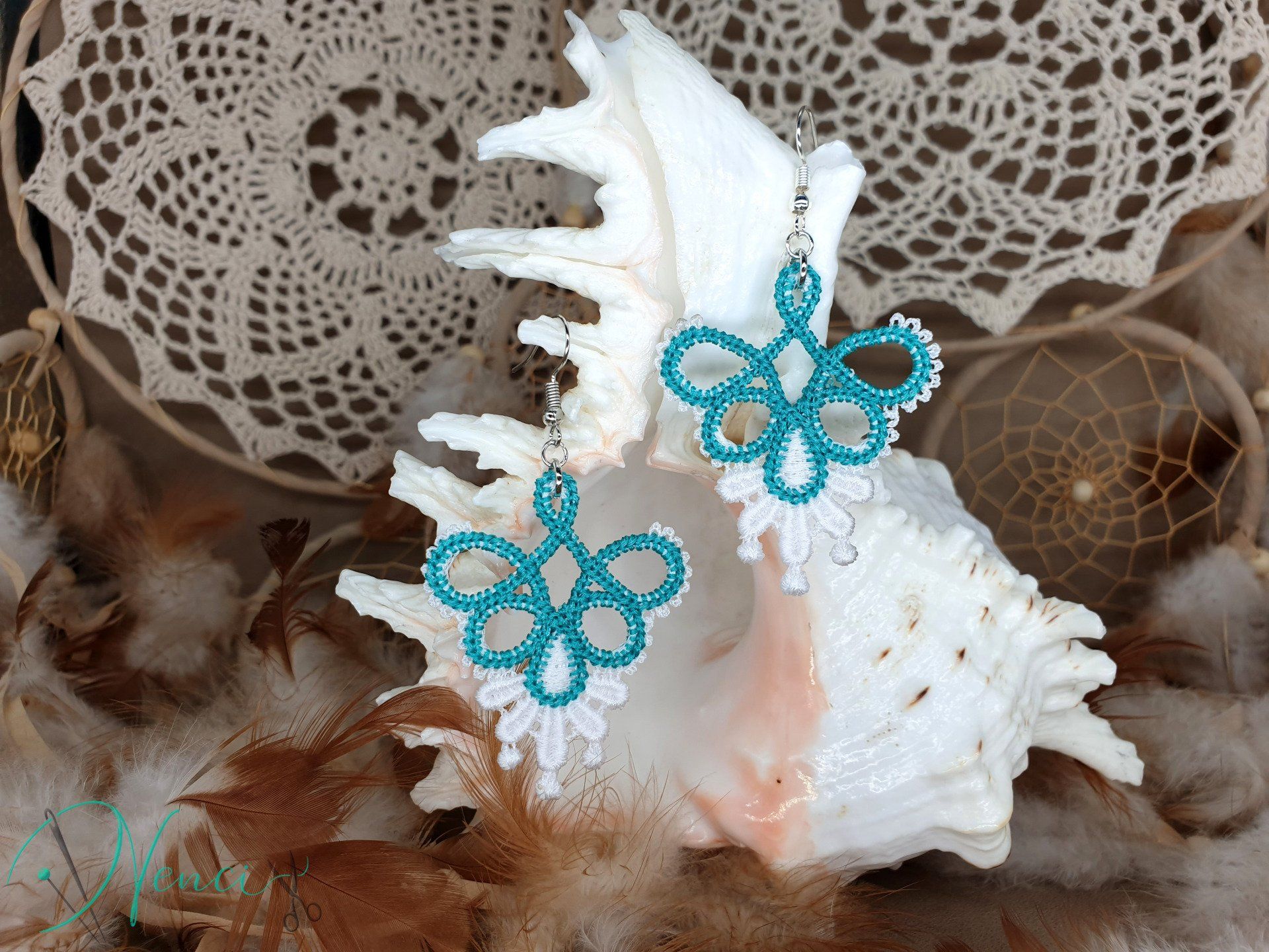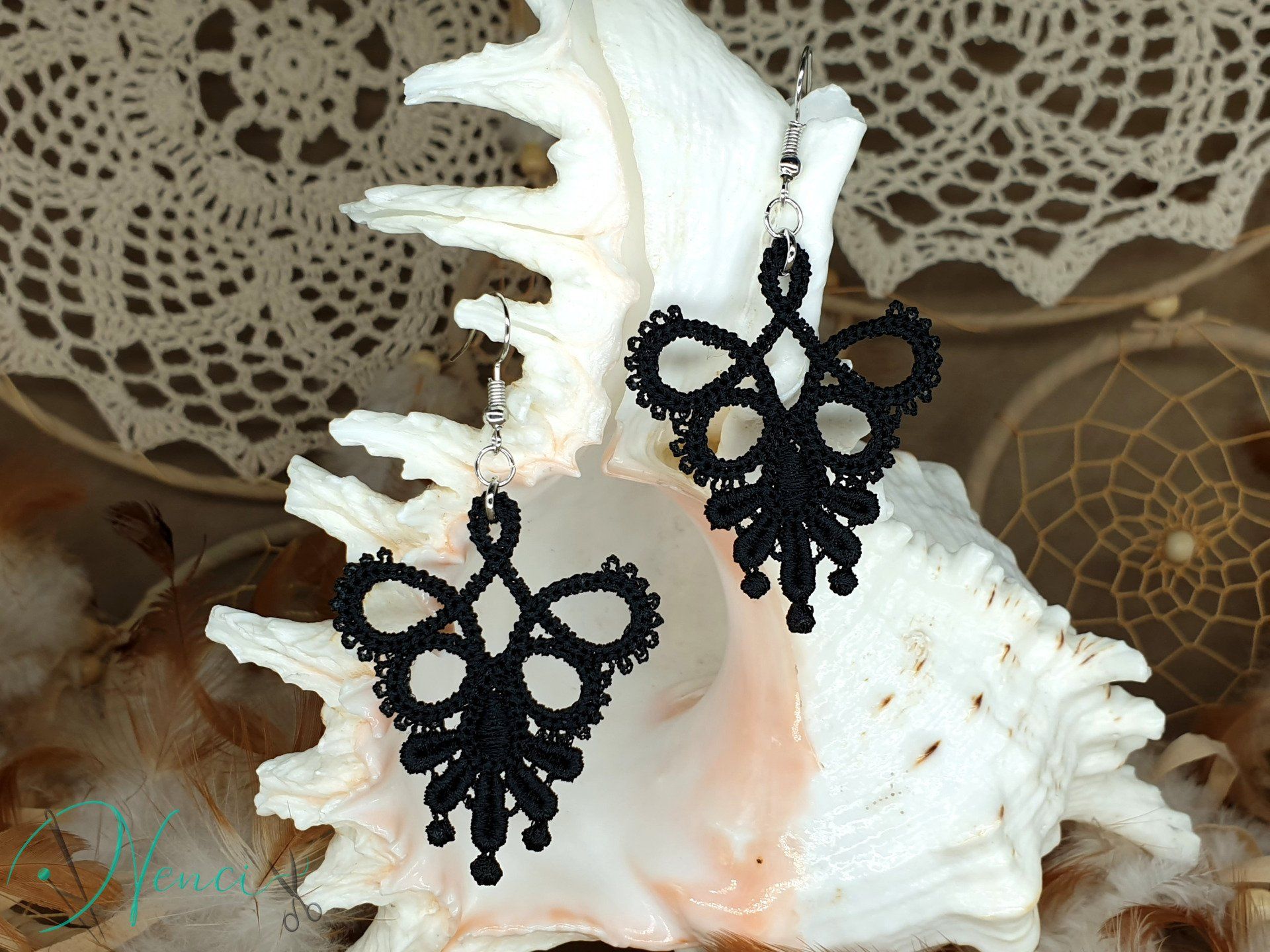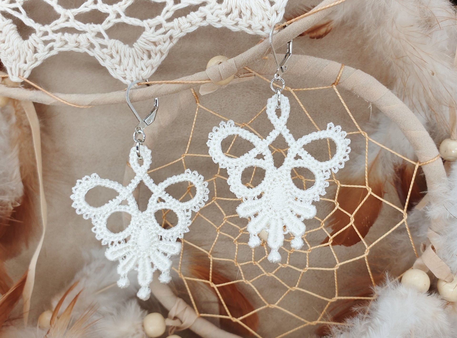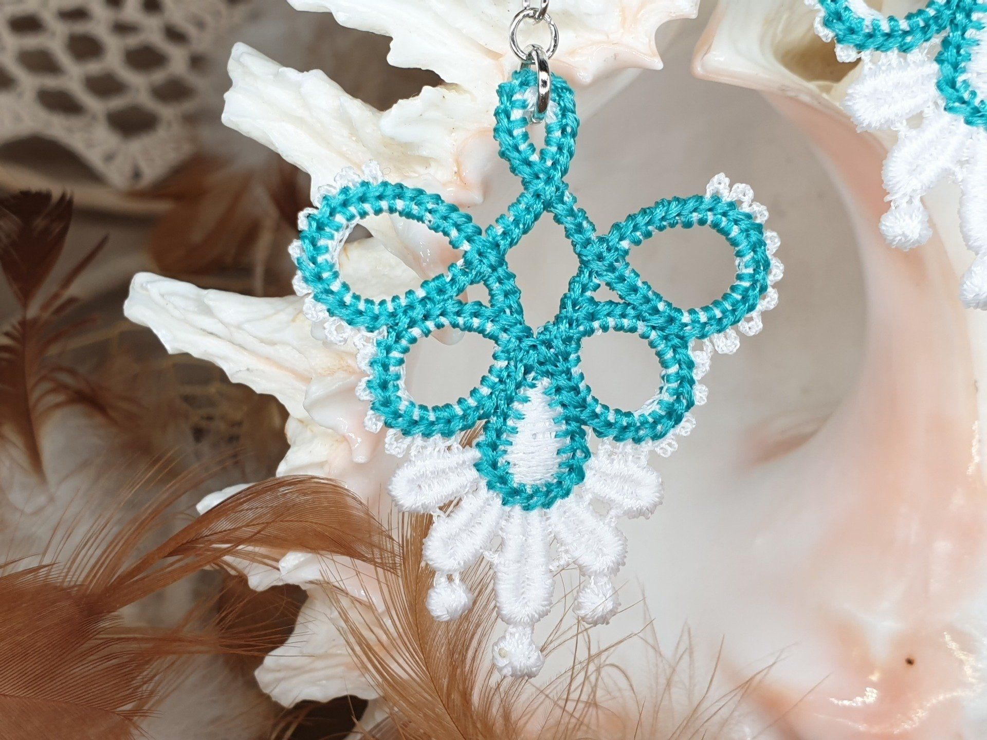 Diese wunderschönen Ohrringe sind im Free-Standing-Lace-Verfahren