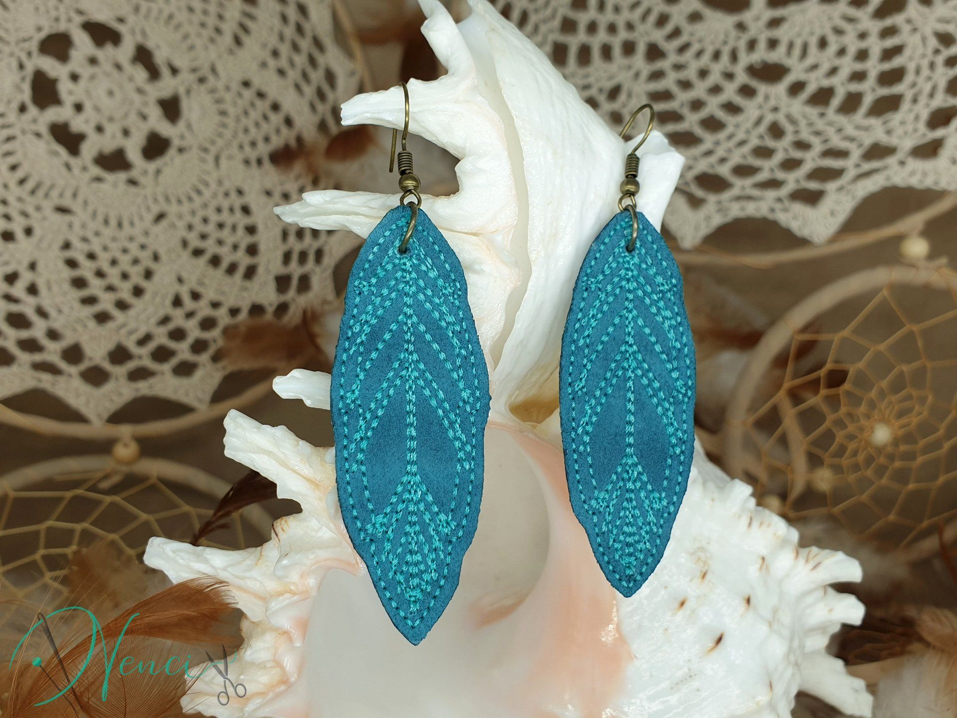 Das Muster der Federn wird auf Kunstleder, Wildlederimitat oder dünnen Filz gestickt, ganz wie du möchtest...
