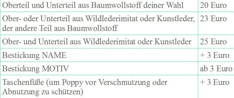 (du wählst deine Farben, das Material, die Stickerei, das Motiv auf dem Stoff, den Reißverschluss etc.)