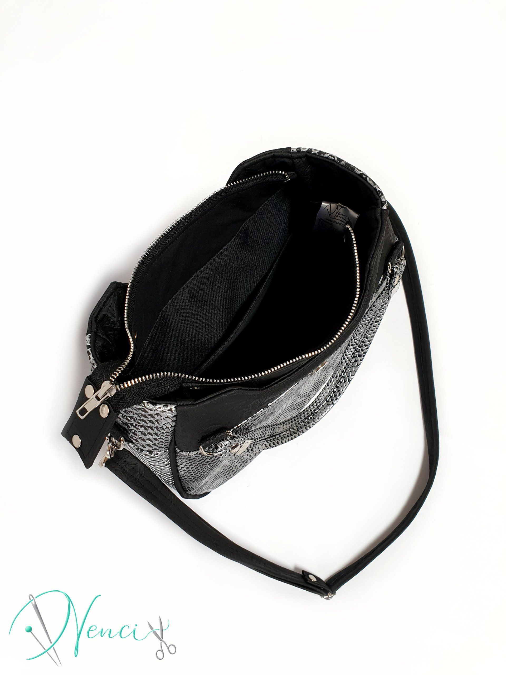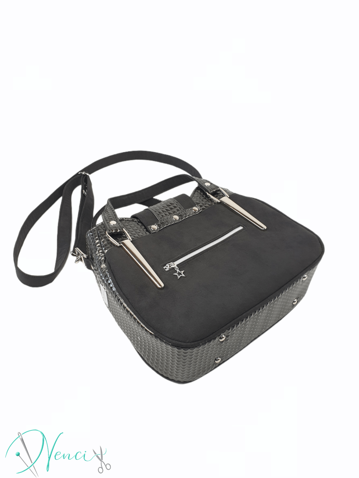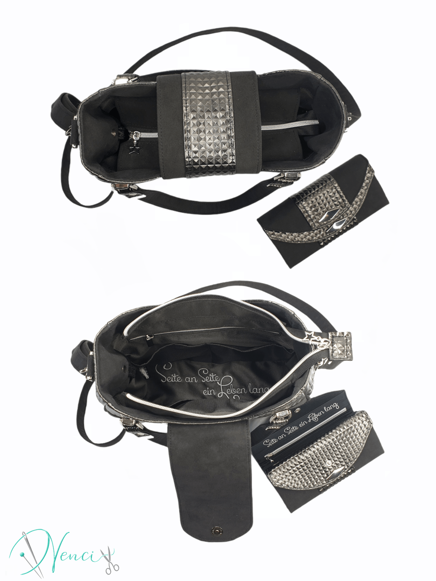 Möglich sind Innenfächer und/oder Reißverschlussfächer innen und/oder außen, in denen Schminkutensilien oder der Schlüssel bzw. das Smartphone ihren Platz finden.
